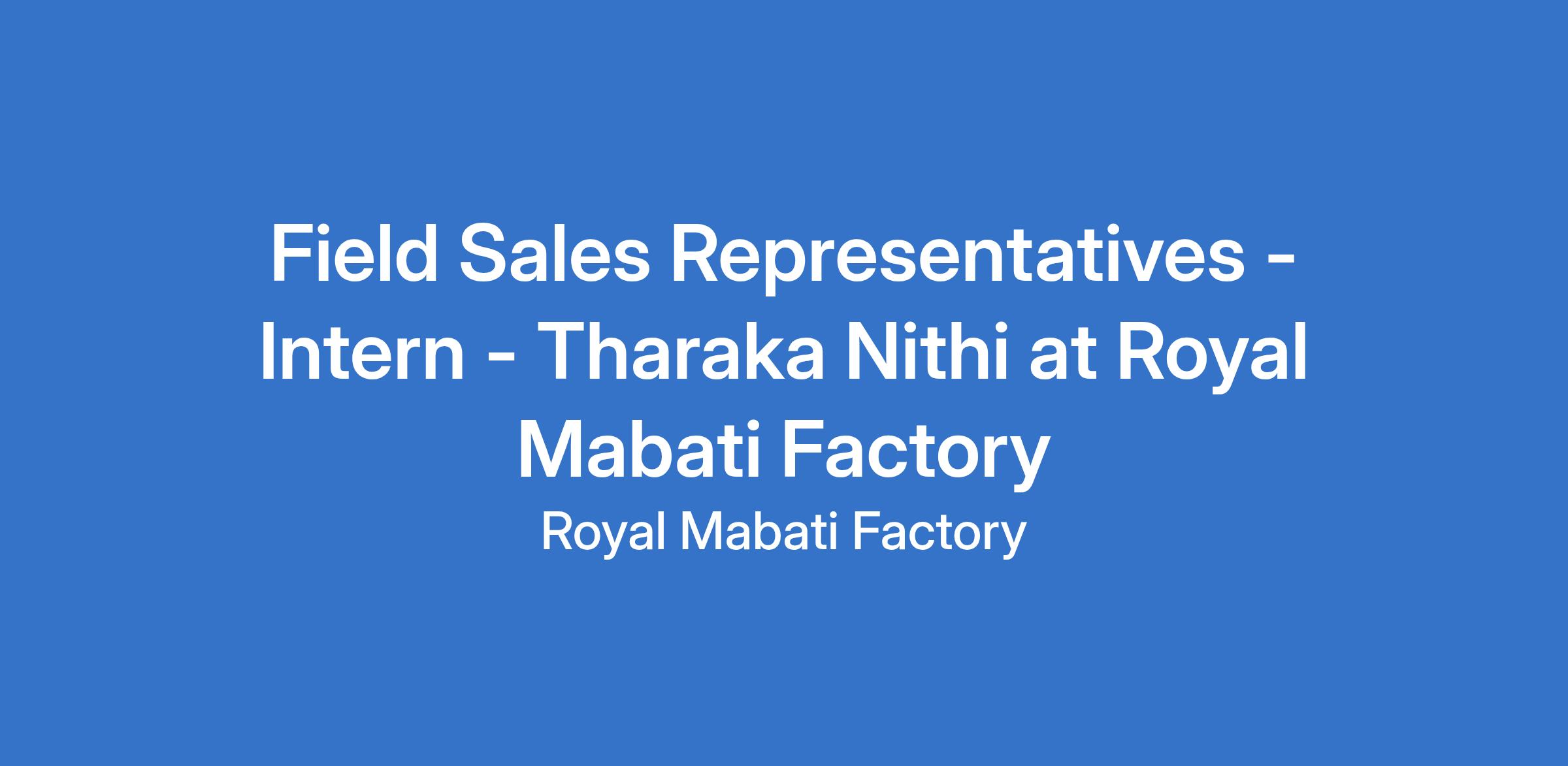 Field Sales Representatives - Intern - Tharaka Nithi at Royal Mabati Factory