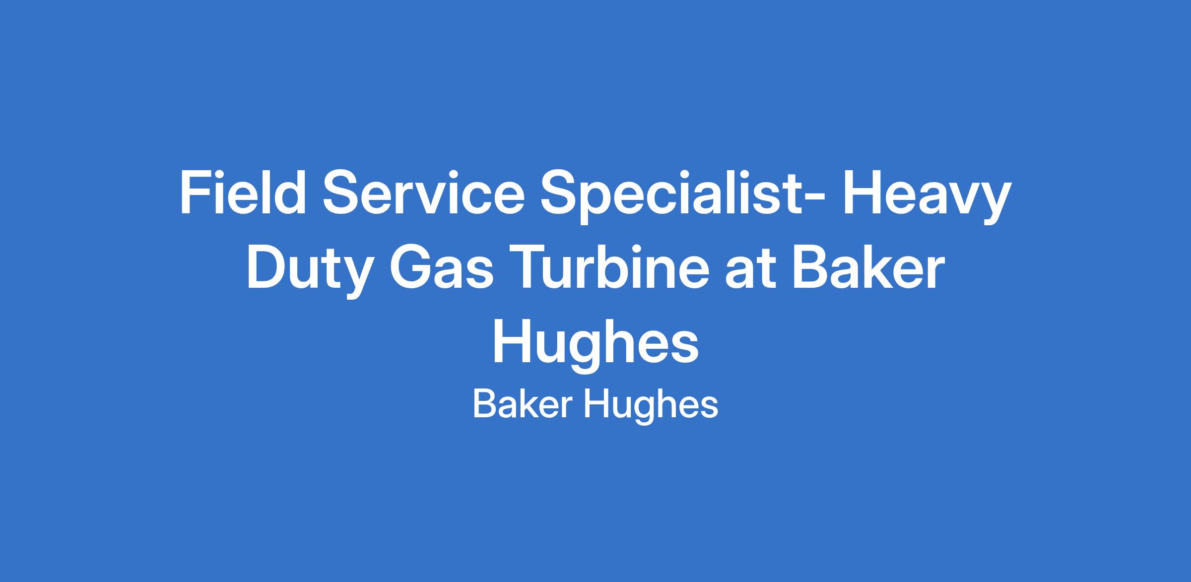 Field Service Specialist- Heavy Duty Gas Turbine at Baker Hughes