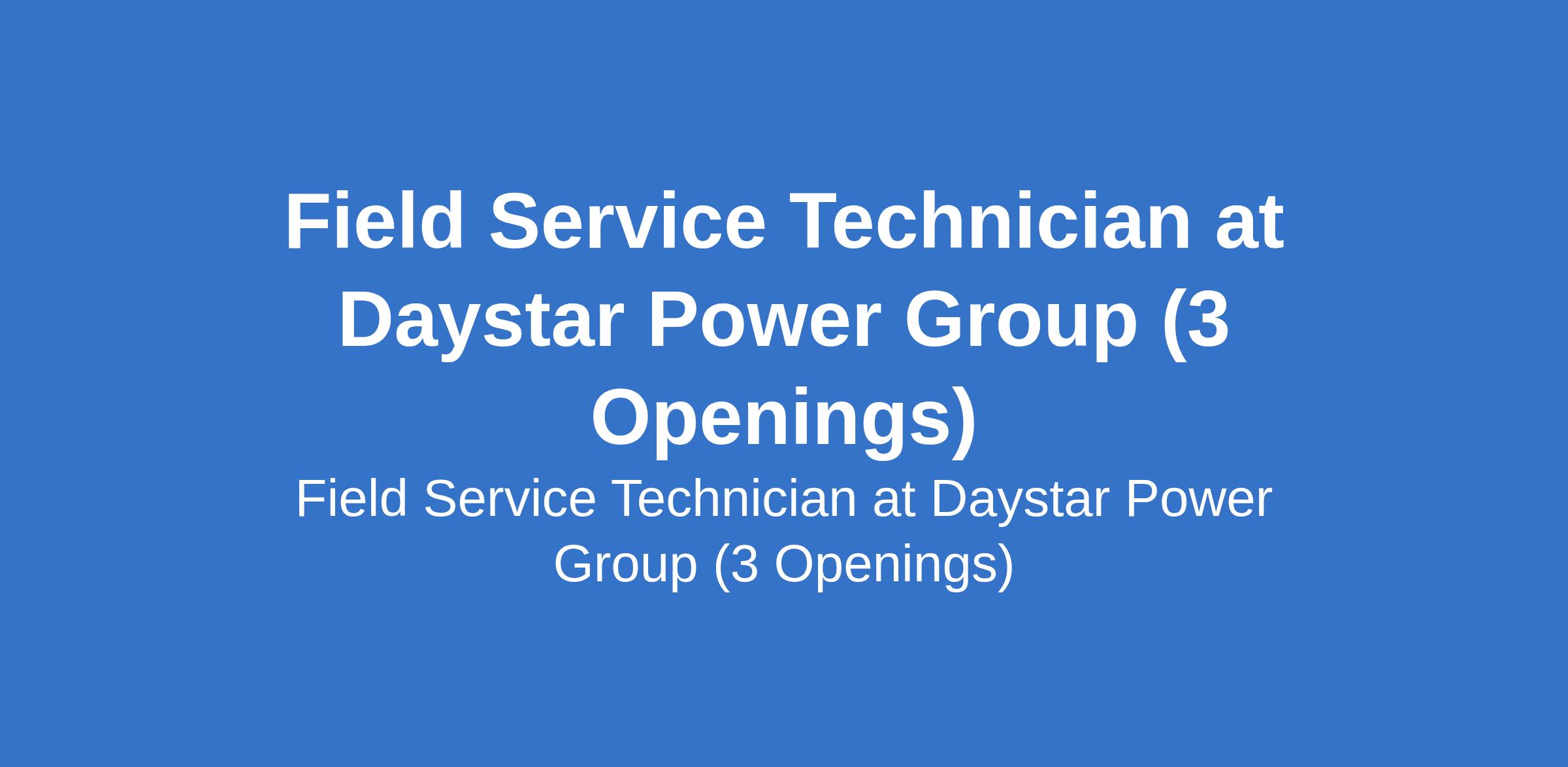 Daystar Power Group is recruiting to fill the position of: Solar Field Service Technician. The position is located in Agbara - Lagos, Aba - Abia, and Kano States. Interested candidates should possess an Ordinary National Diploma or Higher National Diploma in Engineering, preferably Electrical, Electronics, or Mechanical with 12 years handson experience in power systems maintenance (renewable energy experience is a strong advantage).