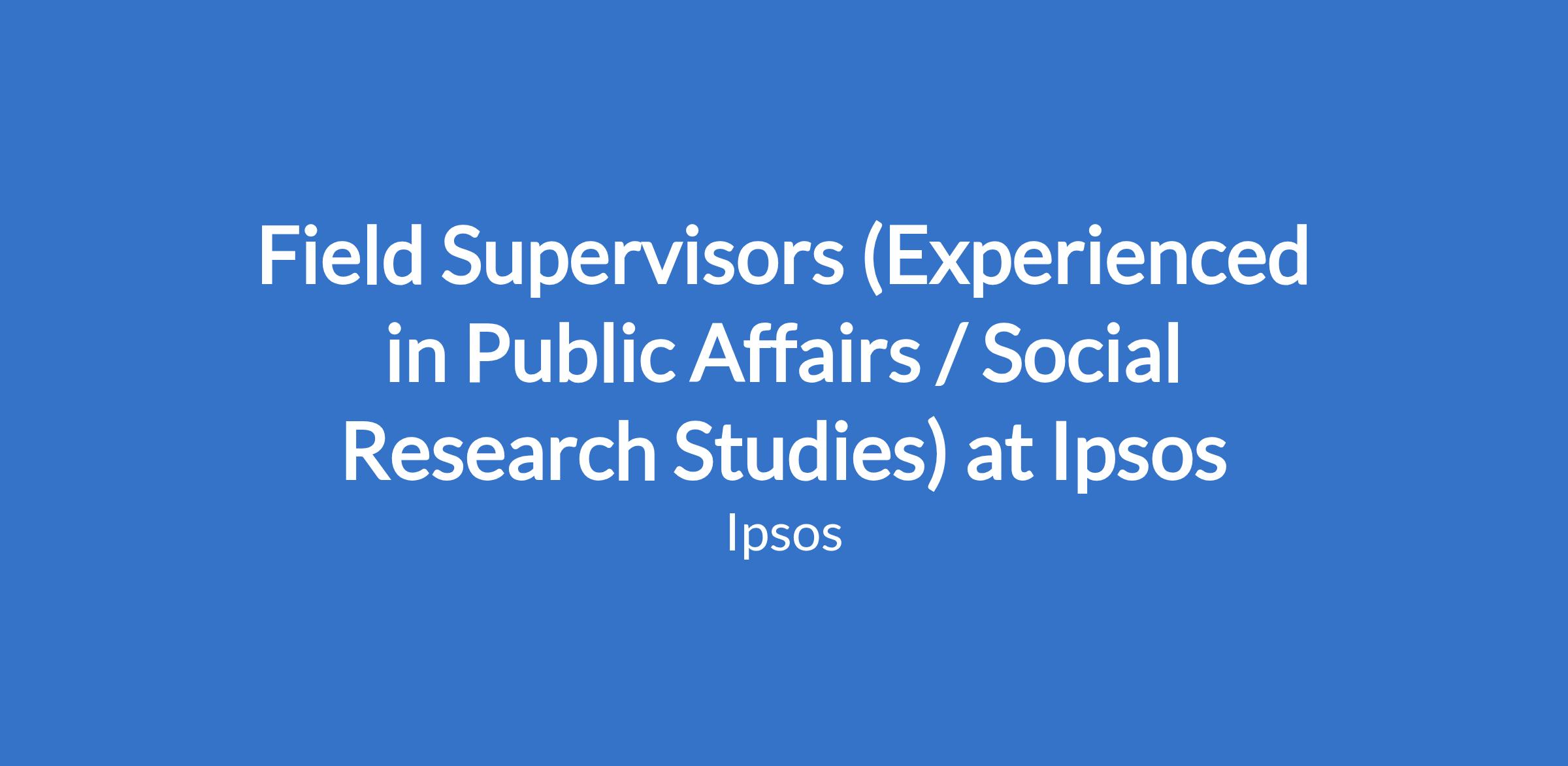 Field Supervisors (Experienced in Public Affairs / Social Research Studies) at Ipsos