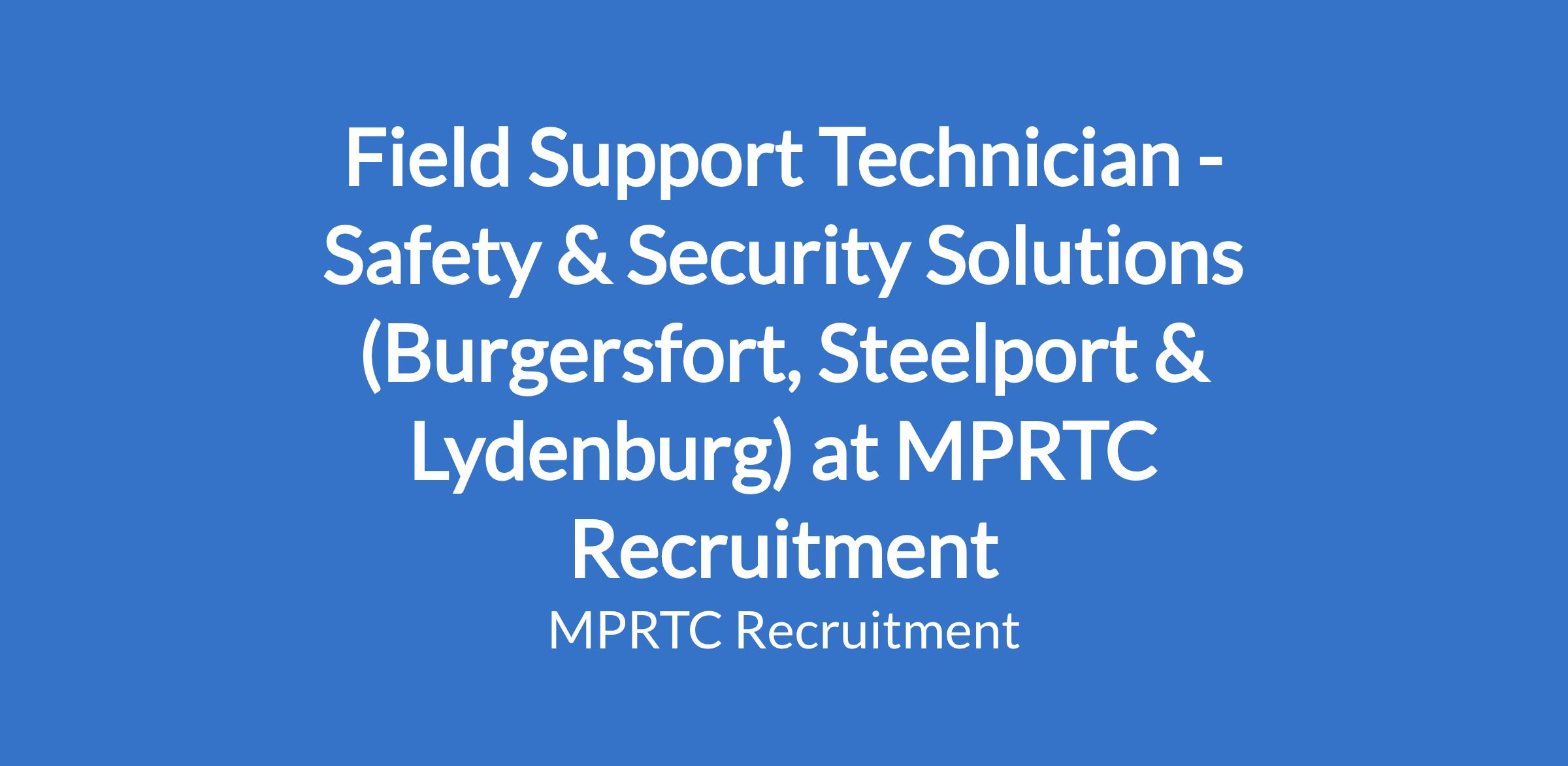 Field Support Technician - Safety & Security Solutions (Burgersfort, Steelport & Lydenburg) at MPRTC Recruitment