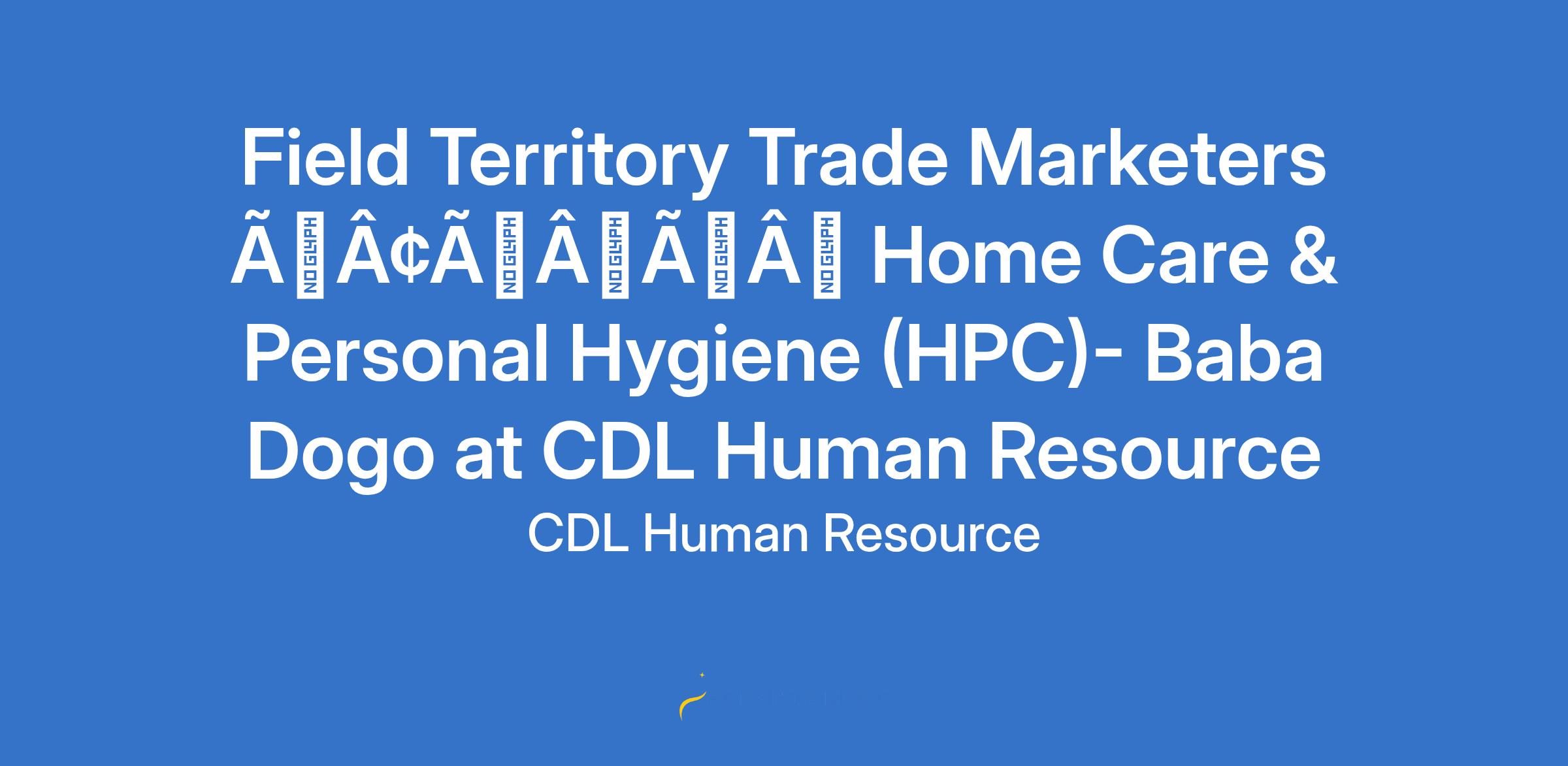 Field Territory Trade Marketers âÃÂàHome Care & Personal Hygiene (HPC)- Baba Dogo at CDL Human Resource