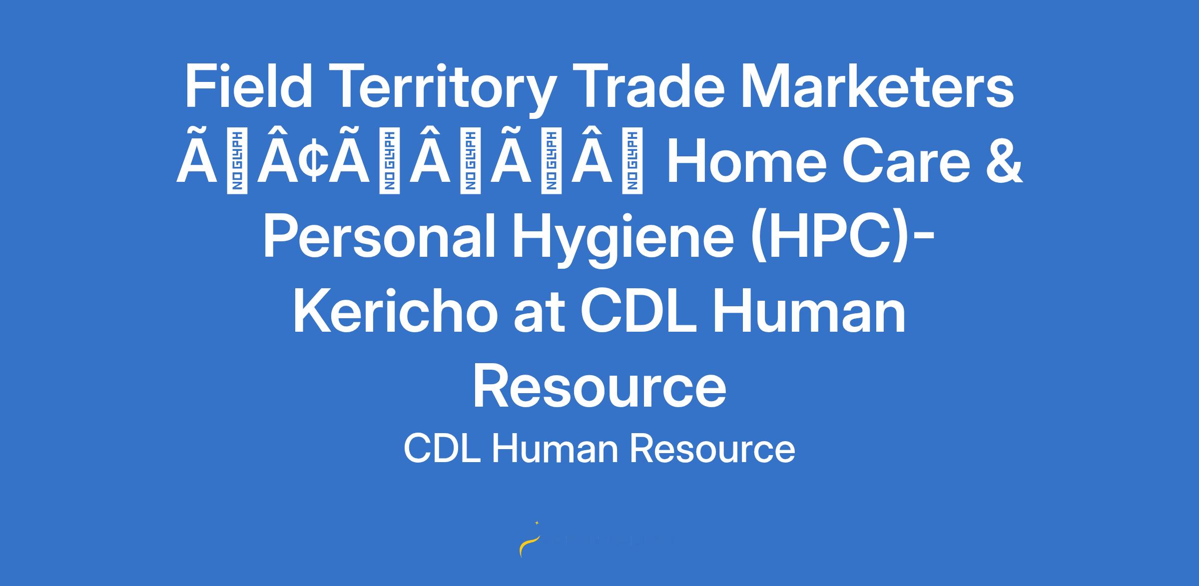 Field Territory Trade Marketers âÃÂàHome Care & Personal Hygiene (HPC)- Kericho at CDL Human Resource