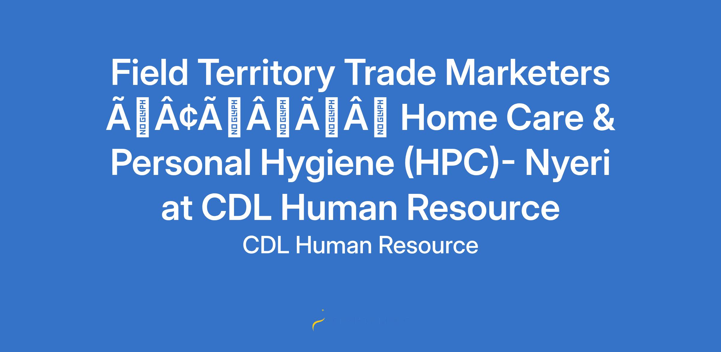 Field Territory Trade Marketers âÃÂàHome Care & Personal Hygiene (HPC)- Nyeri at CDL Human Resource