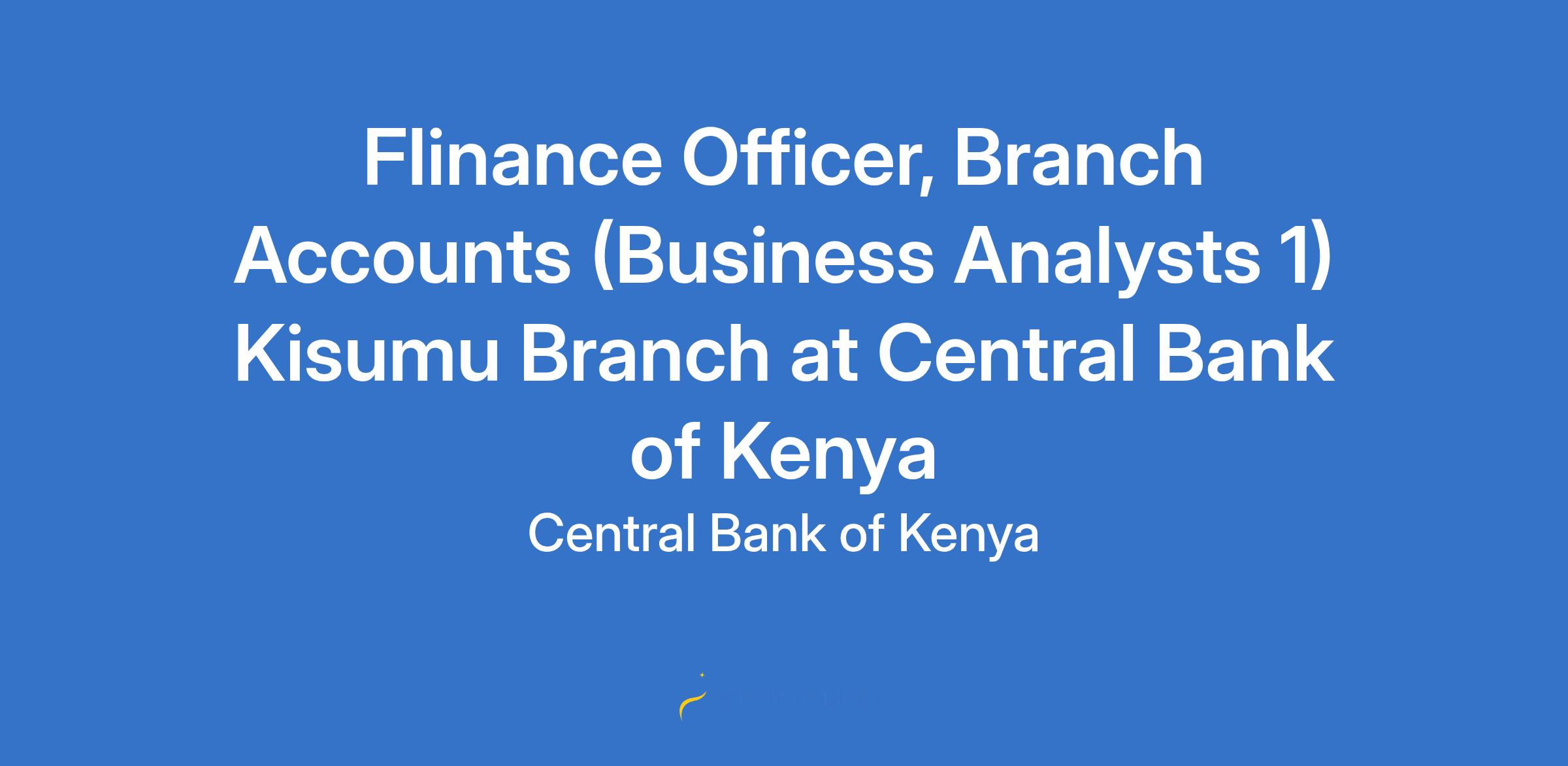 FIinance Officer, Branch Accounts (Business Analysts 1) Kisumu Branch at Central Bank of Kenya