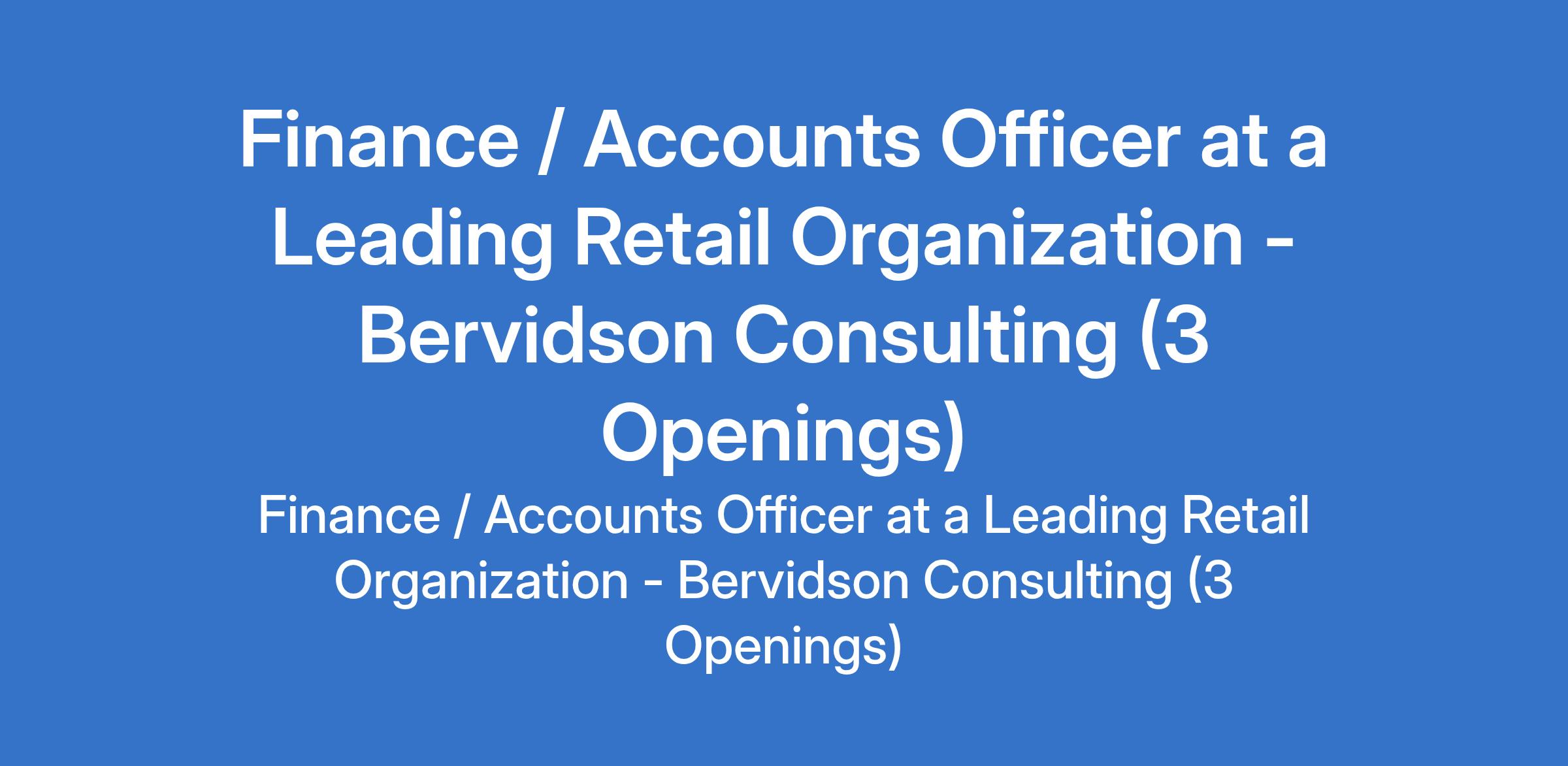 Bervidson Consulting - Our client, a Leading Retail Organization is recruiting to fill the position of: Finance / Accounts Officer. The position is located in Victoria Island, Lekki & Lagos Island - Lagos State. Salary: N150,000 - N200,000 per month. Interested candidates should possess a minimum of a B.Sc Degree with a minimum of 3 years in a similar position.