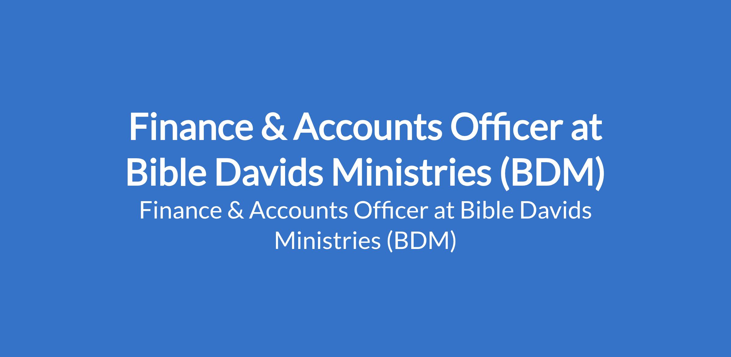 Bible Davids Ministries (BDM) is recruiting to fill the position of: Finance & Accounts Officer. The position is located in Abuja. Interested candidates should possess a Bachelors Degree in Accounting, Finance, Economics, or a related field with 35 years of experience in accounting or financial management.
