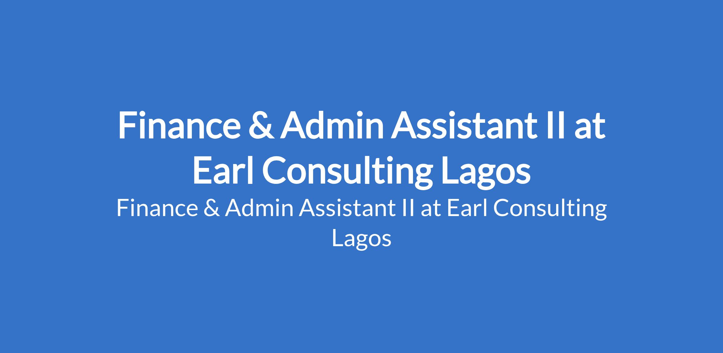 Earl Consulting Lagos is recruiting to fill the position of: Finance & Admin Assistant II. The position is located in Lagos State. Interested candidates should possess an HND, Bachelors Degree in Accounting, Finance, or related fields; Professional certification (ICAN, ACCA, or equivalent) is an advantage with 2 - 4 years experience in accounting or finance roles.