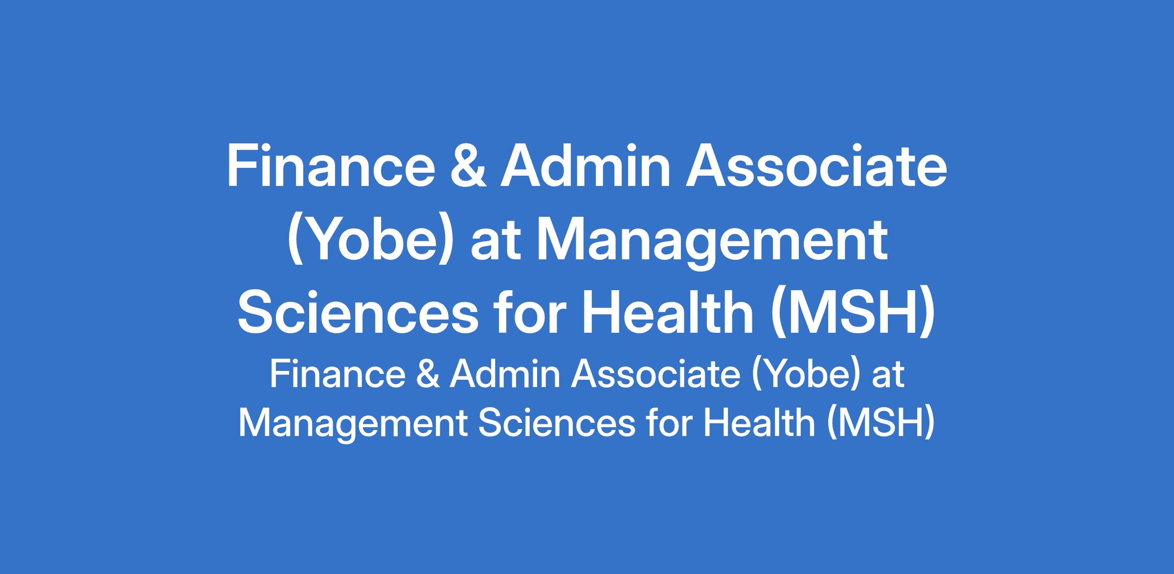 Management Sciences for Health (MSH) is recruiting to fill the position of: Finance & Admin Associate. The position is located in Yobe State. Interested candidates should possess a Bachelor's Degree in Finance, Accounting, or a related field with 2-4 years experience in Accounting, Finance and Administration.