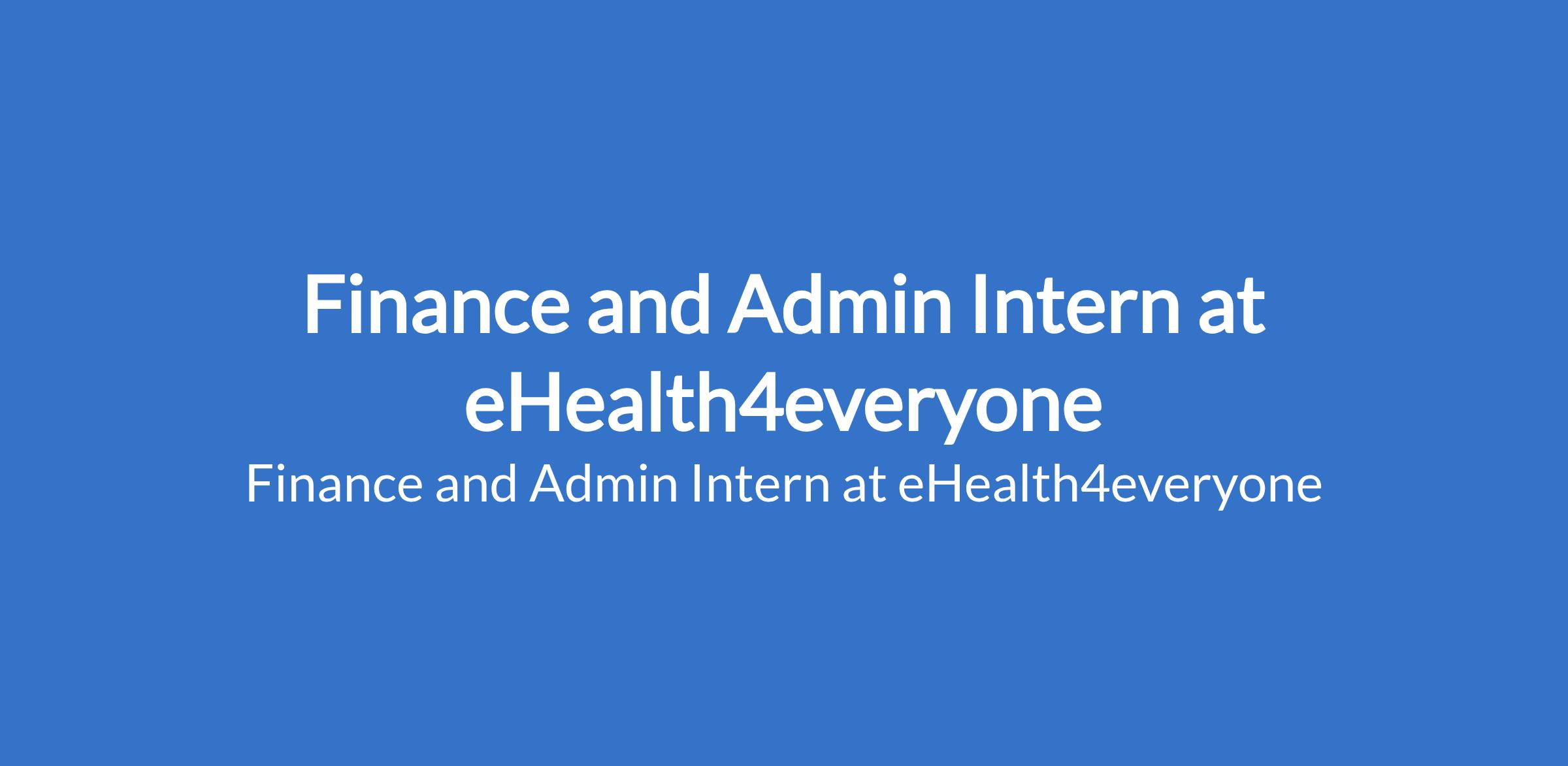 eHealth4everyone is recruiting to fill the position of: Finance and Admin Intern. The position is located in Abuja (FCT). Interested candidates should possess a Bachelors Degree in Accounting, Economics, Banking & Finance, Business Administration, or any related field and must have at least 6 months of professional experience in financial management.