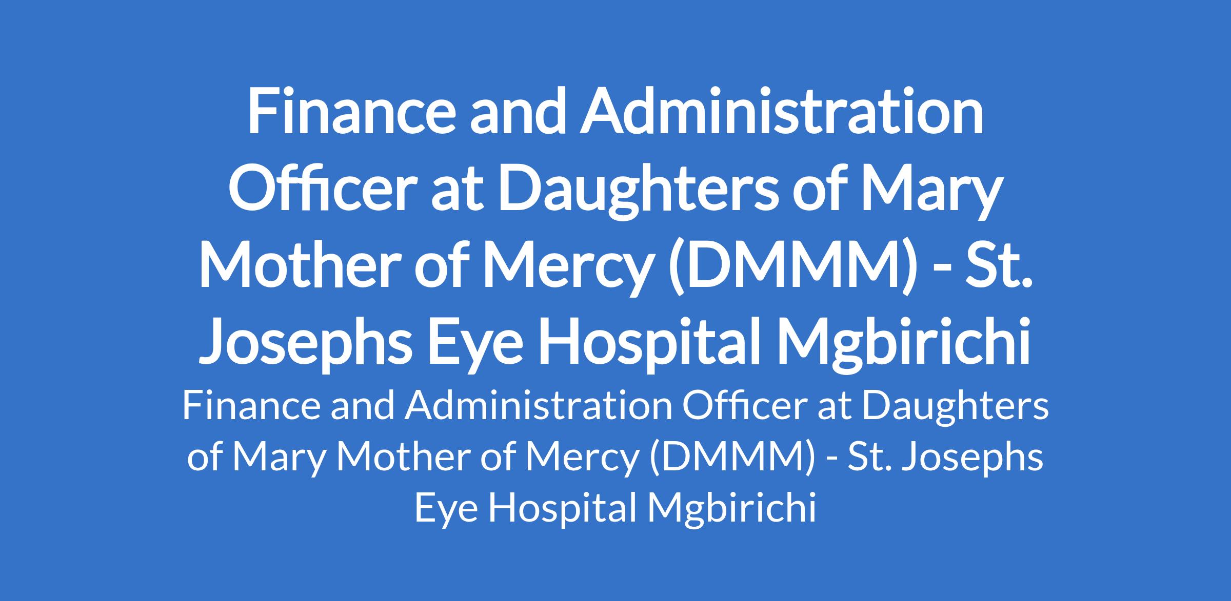 Mary Mother of Mercy (DMMM) - St. Josephs Eye Hospital Mgbirichiis recruiting to fill the position of: Finance and Administration Officer. The position is located in Imo State. Interested candidates should possess a Bachelors Degree in Accounting, Finance, Business Administration, Economics, or a related discipline with 3 5 years experience in finance and administration roles, preferably within NGO or donor-funded projects.