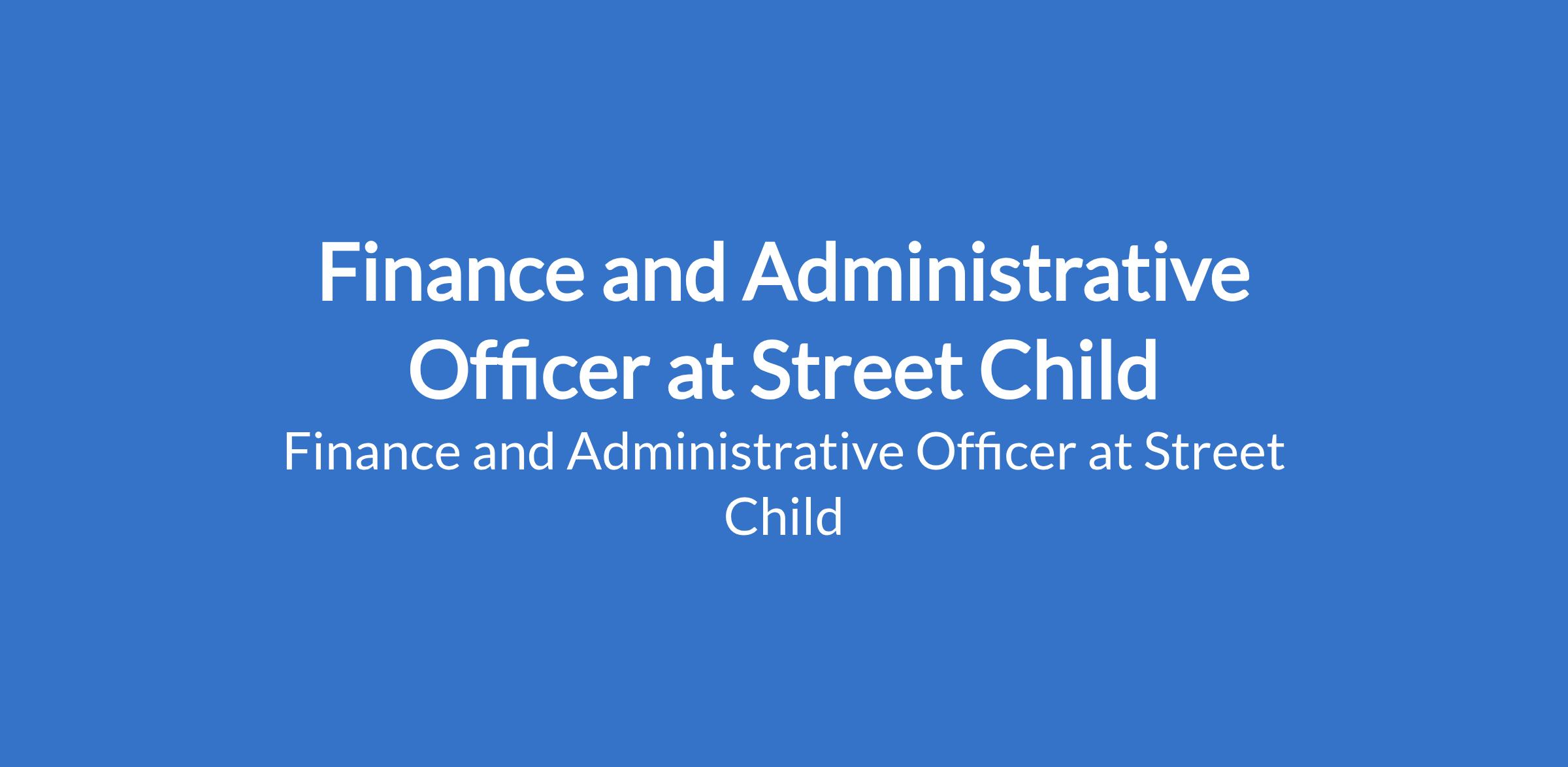 Street Child is recruiting to fill the position of: Finance and Administrative Officer. The position is located in Maiduguri, Borno State. Interested candidates should possess a Degree in Finance, Accounting, Banking and Finance or other related field of study with a minimum of 3 years of experience directly supporting/managing Finance, HR, and administration