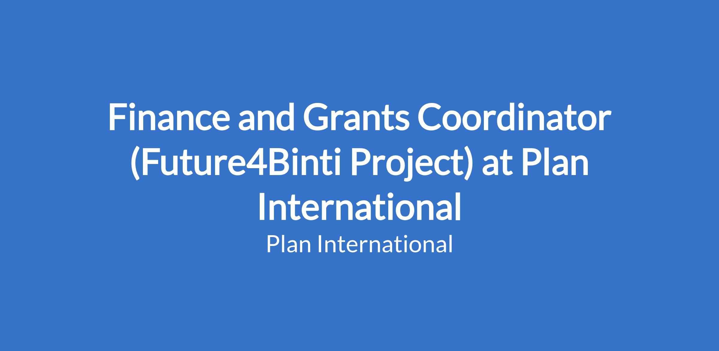 Finance and Grants Coordinator (Future4Binti Project) at Plan International