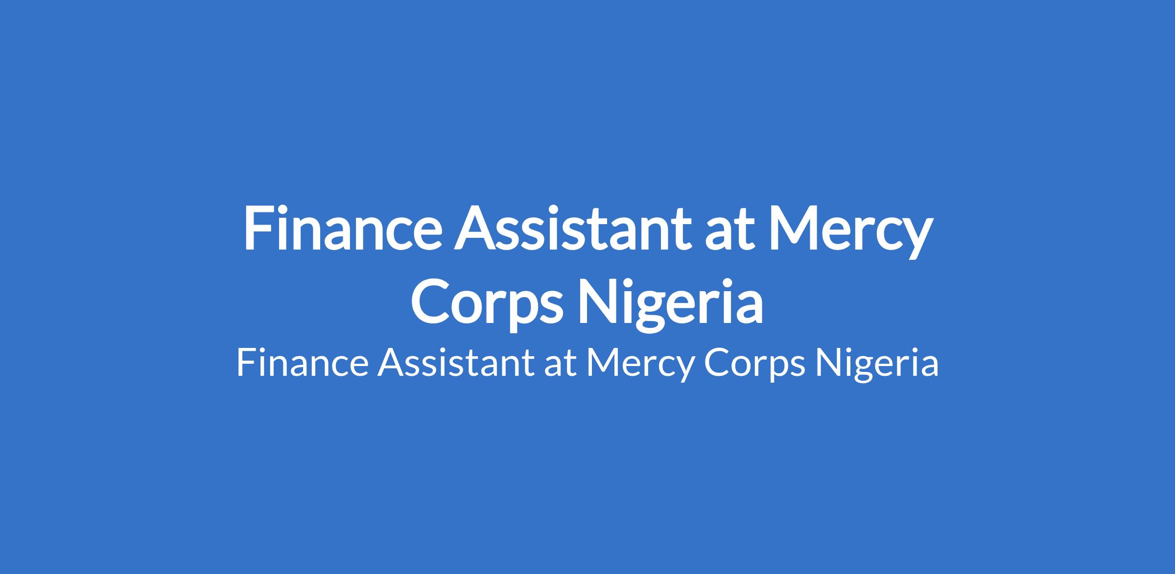 Mercy Corps Nigeria is recruiting to fill the position of: Finance Assistant. The position is located in Damaturu, Yobe State. Interested candidates should possess a Bachelor's Degree or HND in finance, accounting or equivalent with two or more years of compliance and finance experience is required.