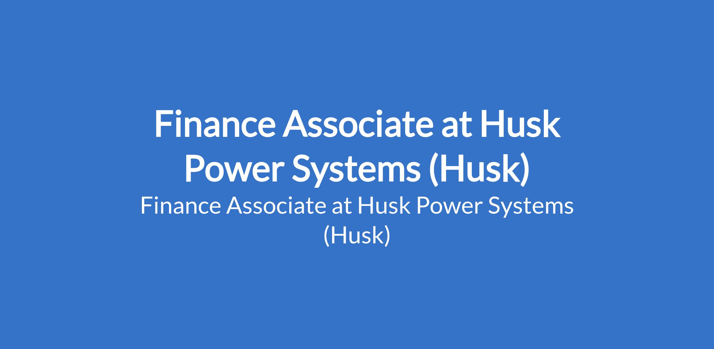 Finance Associate at Husk Power Systems (Husk)