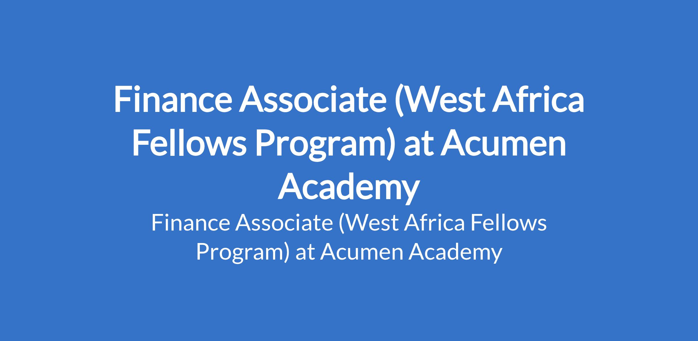 Acumen Academy is recruiting to fill the position of: Finance Associate (West Africa Fellows Program). The position is located in Lagos State. Interested candidates should possess relevant qualifications with a minimum of 7 years of progressive experience in accounting, audit, or program finance.