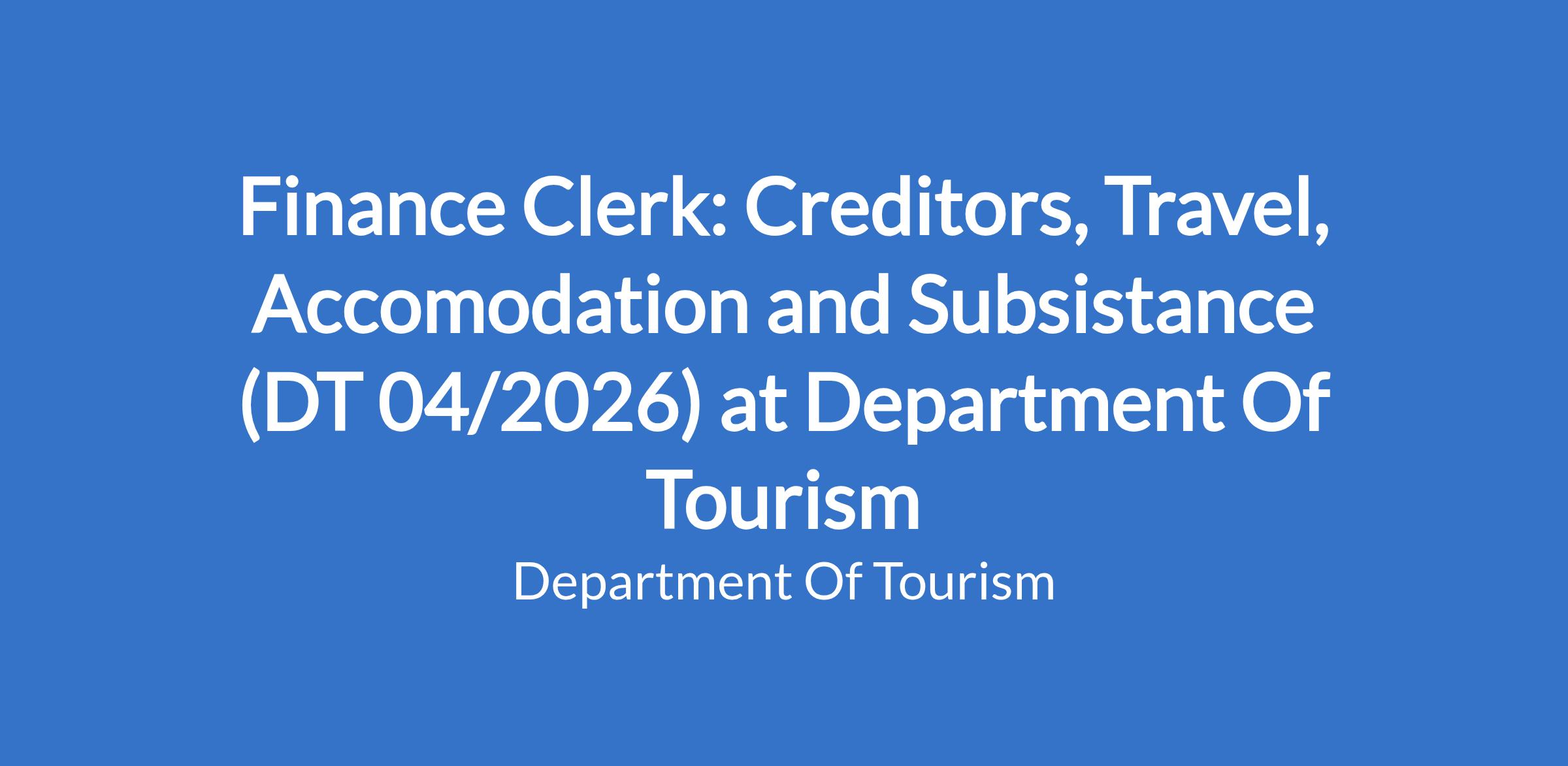 Finance Clerk: Creditors, Travel, Accomodation and Subsistance (DT 04/2026) at Department Of Tourism