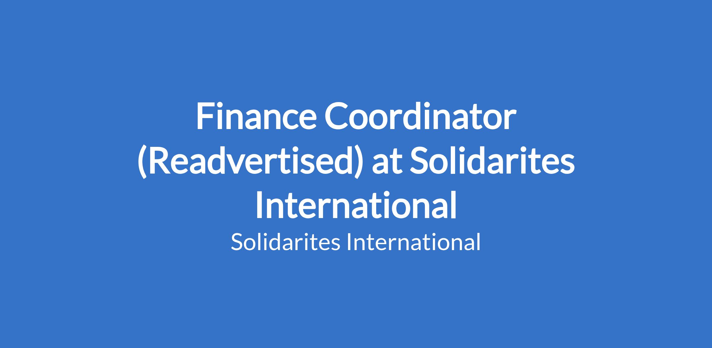 As coordinator, he/she is responsible for guaranteeing the financial balance of the mission and for ensuring that all Solidarités International procedures, donor procedures and all laws of the country in which Solidarités International is intervening are respected.