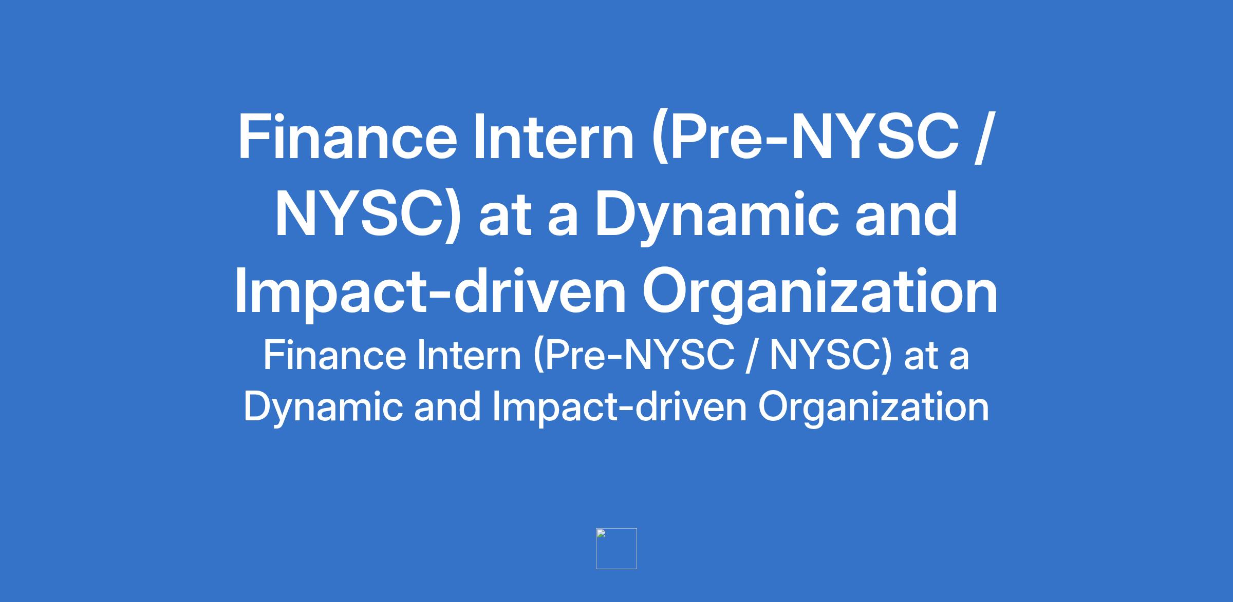 A dynamic and impact-driven organization is recruiting to fill the position of: Finance Intern (Pre-NYSC / NYSC). The position is located in Ikoyi, Lagos State. Interested candidates must be a recent graduate in Accounting, Finance, Economics, or related fields and must be Pre-NYSC or current NYSC members.