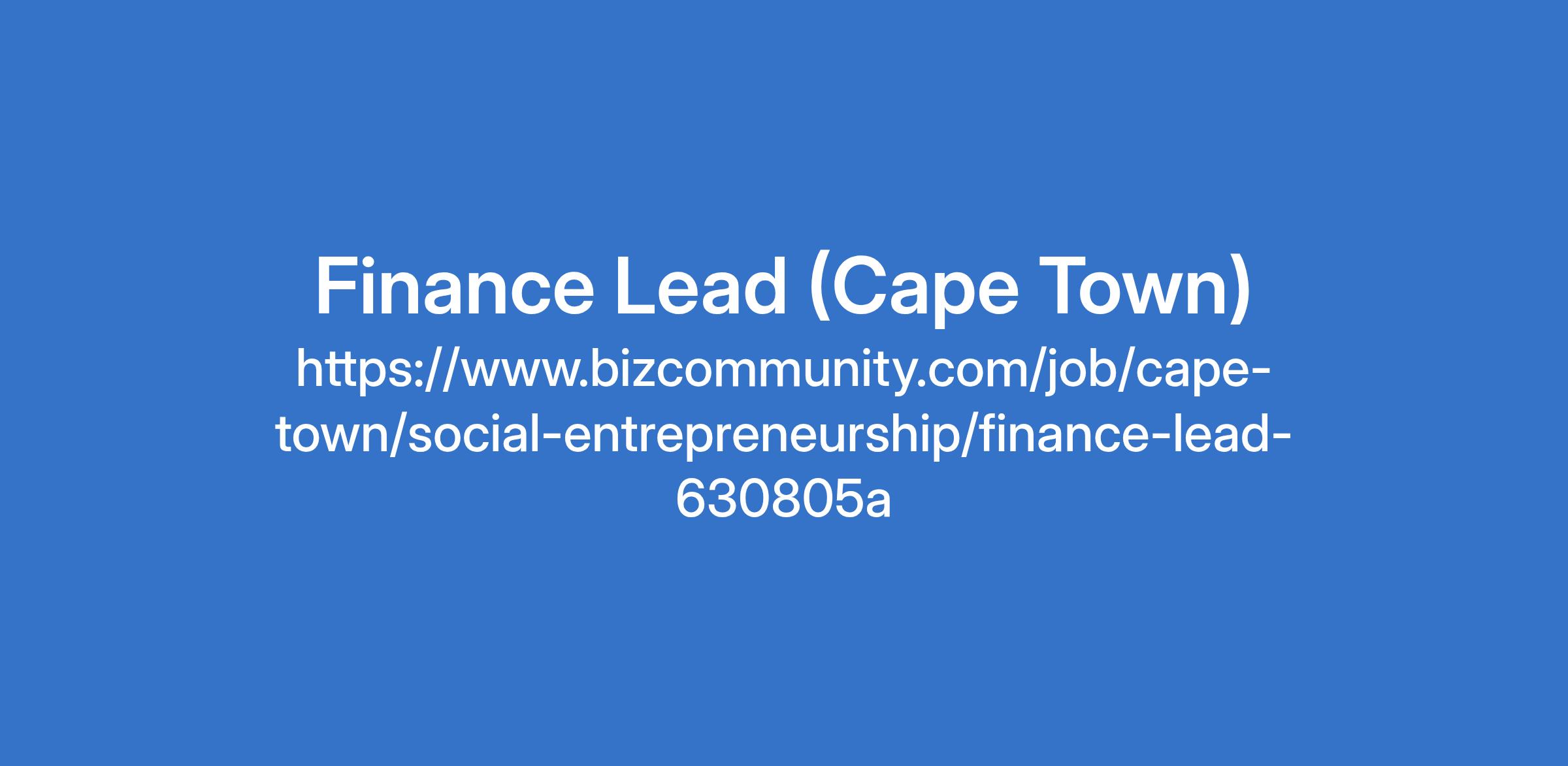 https://www.bizcommunity.com/job/cape-town/social-entrepreneurship/finance-lead-630805a