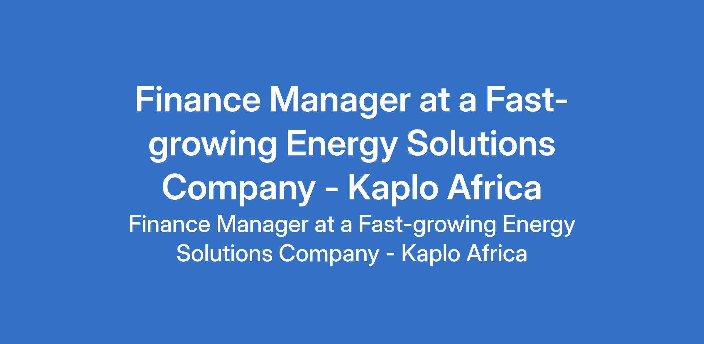 Kaplo Africa - Our client, a fast-growing Energy Solutions Company is recruiting to fill the position of: Finance Manager. The position is located in Abuja (FCT). Salary: N400,000 monthly. Interested candidates should possess a Chartered Accountant (ICAN, ACCA, or equivalent) mandatory, with a minimum of 5 years relevant experience in finance or accounting.