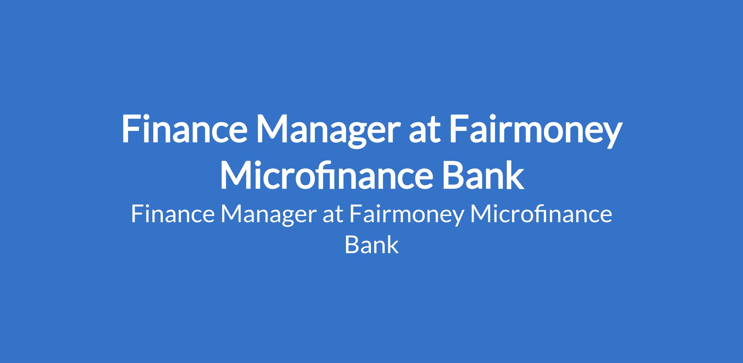 Fairmoney Microfinance Bank is recruiting to fill the position of: Finance Manager. The position is located in Lagos State. Interested candidates should possess relevant qualifications with 5+ years of experience as a Finance Manager or FP&A Manager in a multinational environment (preferably banking, financial services, or tech).