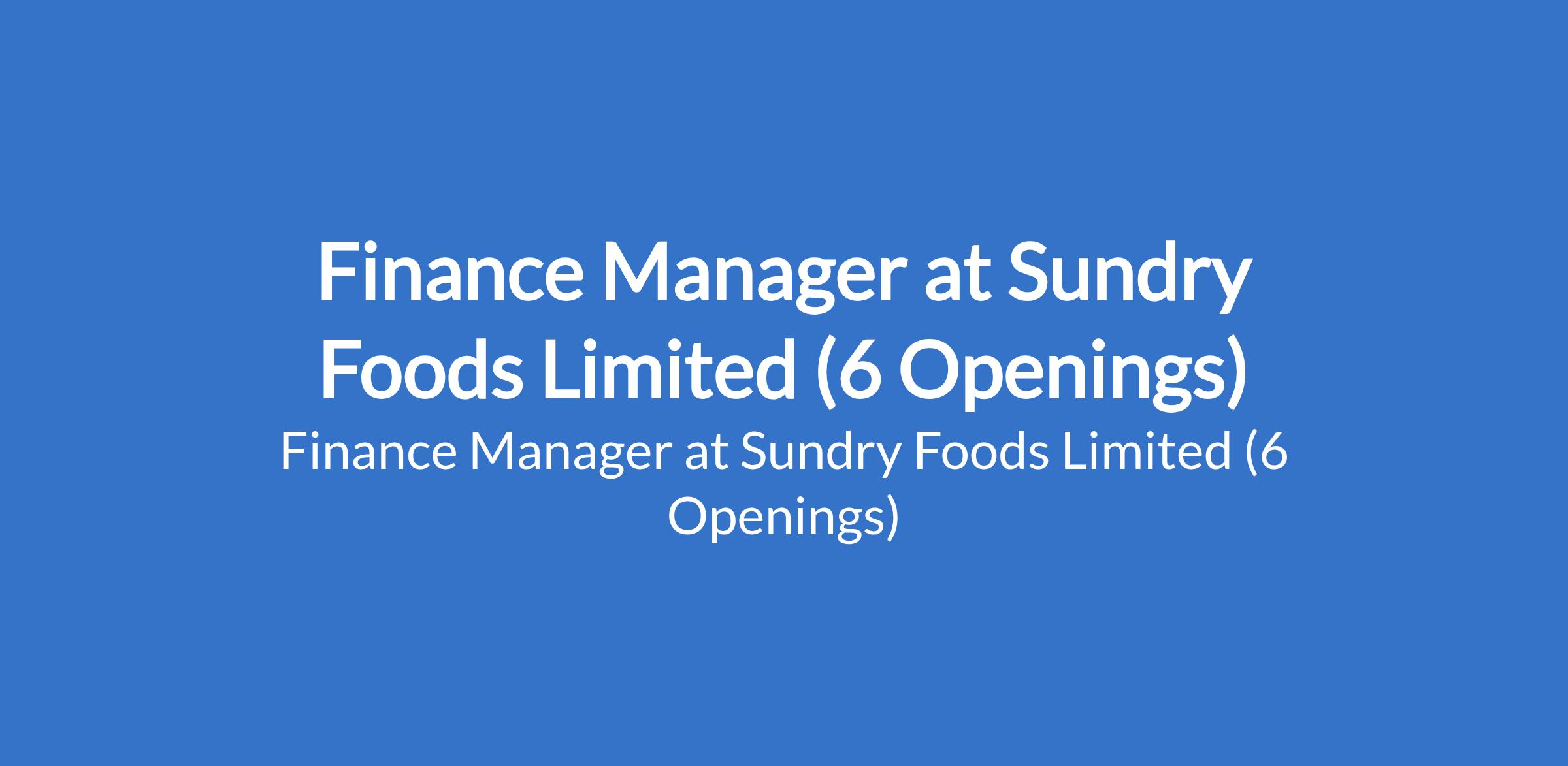 Sundry Foods Limited is recruiting to fill the position of: Finance Manager. The position is located in Port Harcourt - Rivers, Owerri - Imo, Lagos Island, Lekki, Ajah, & Sangotedo - Lagos States. Interested candidates should possess a BSc / HND qualification.