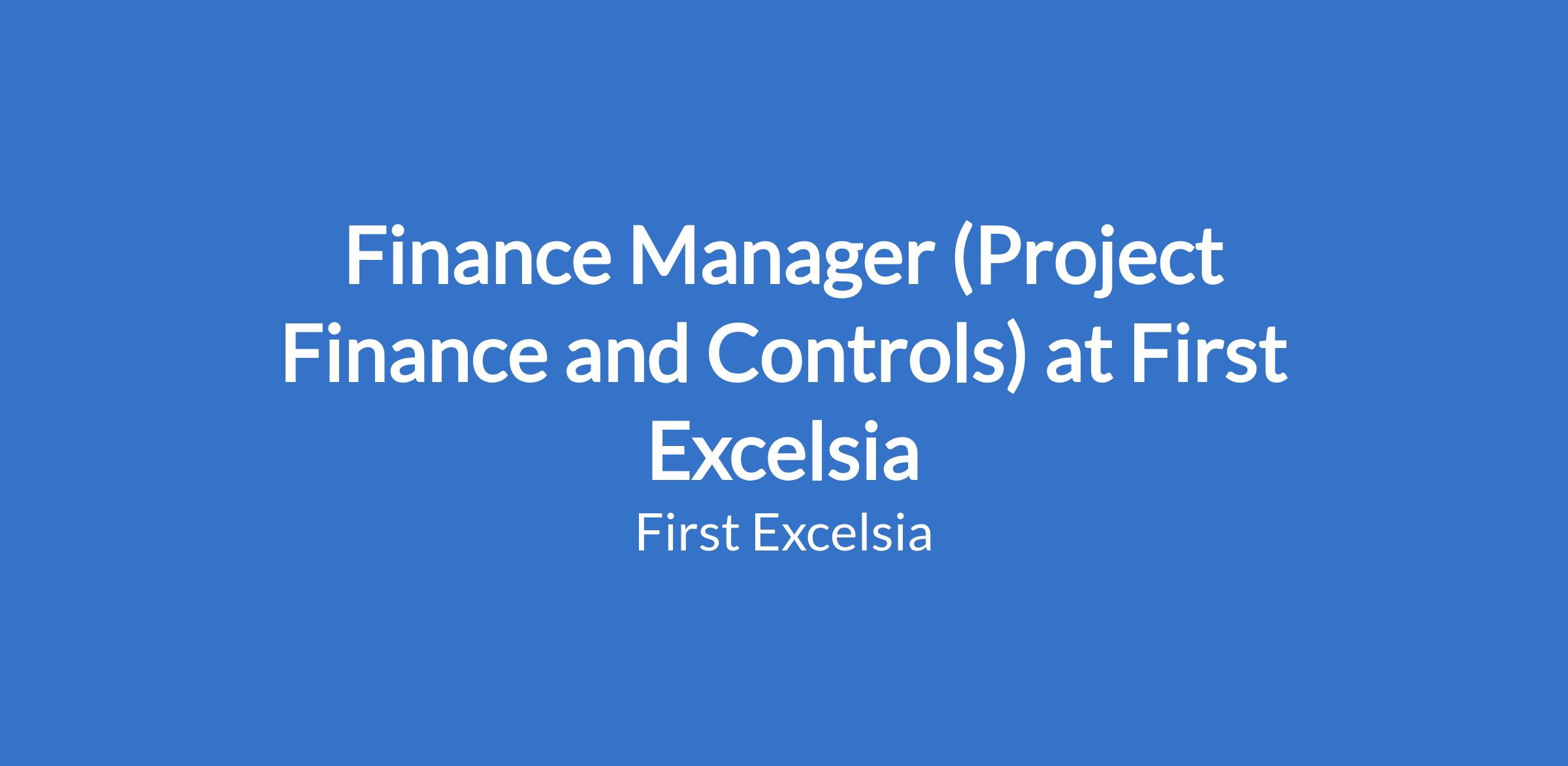 Finance Manager (Project Finance and Controls) at First Excelsia