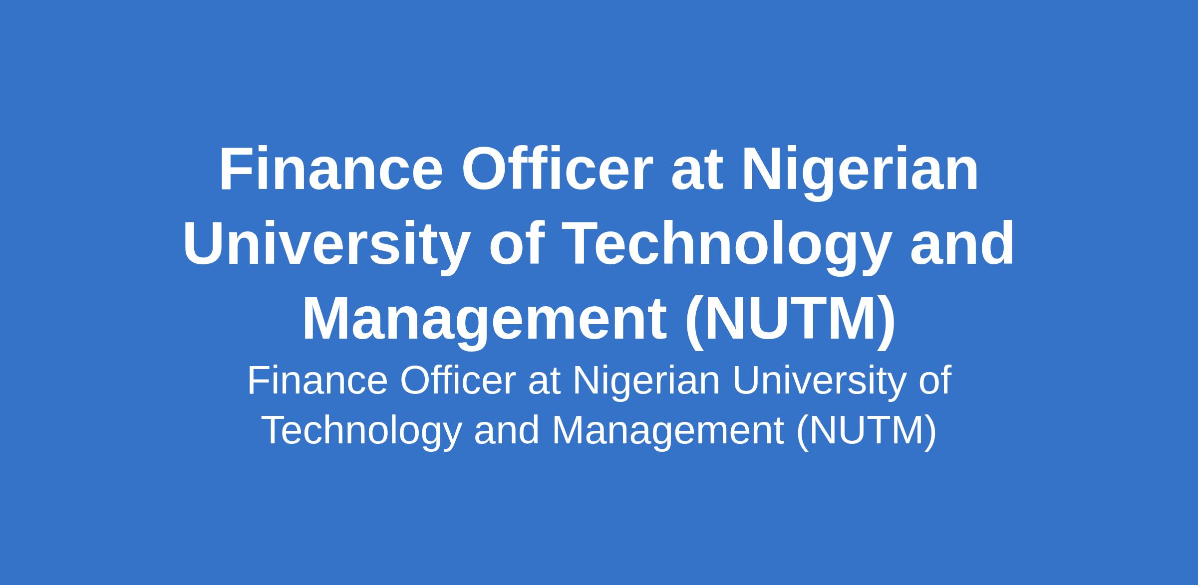 Nigerian University of Technology and Management (NUTM) is recruiting to fill the position of: Finance Officer. The position is located in Lagos State. Interested candidates should possess a Bachelors Degree in Accounting, Finance, Economics, or a related discipline with a minimum of 3 years of relevant post-graduation experience in a finance/accounts role, preferably within the public sector or an educational institution.