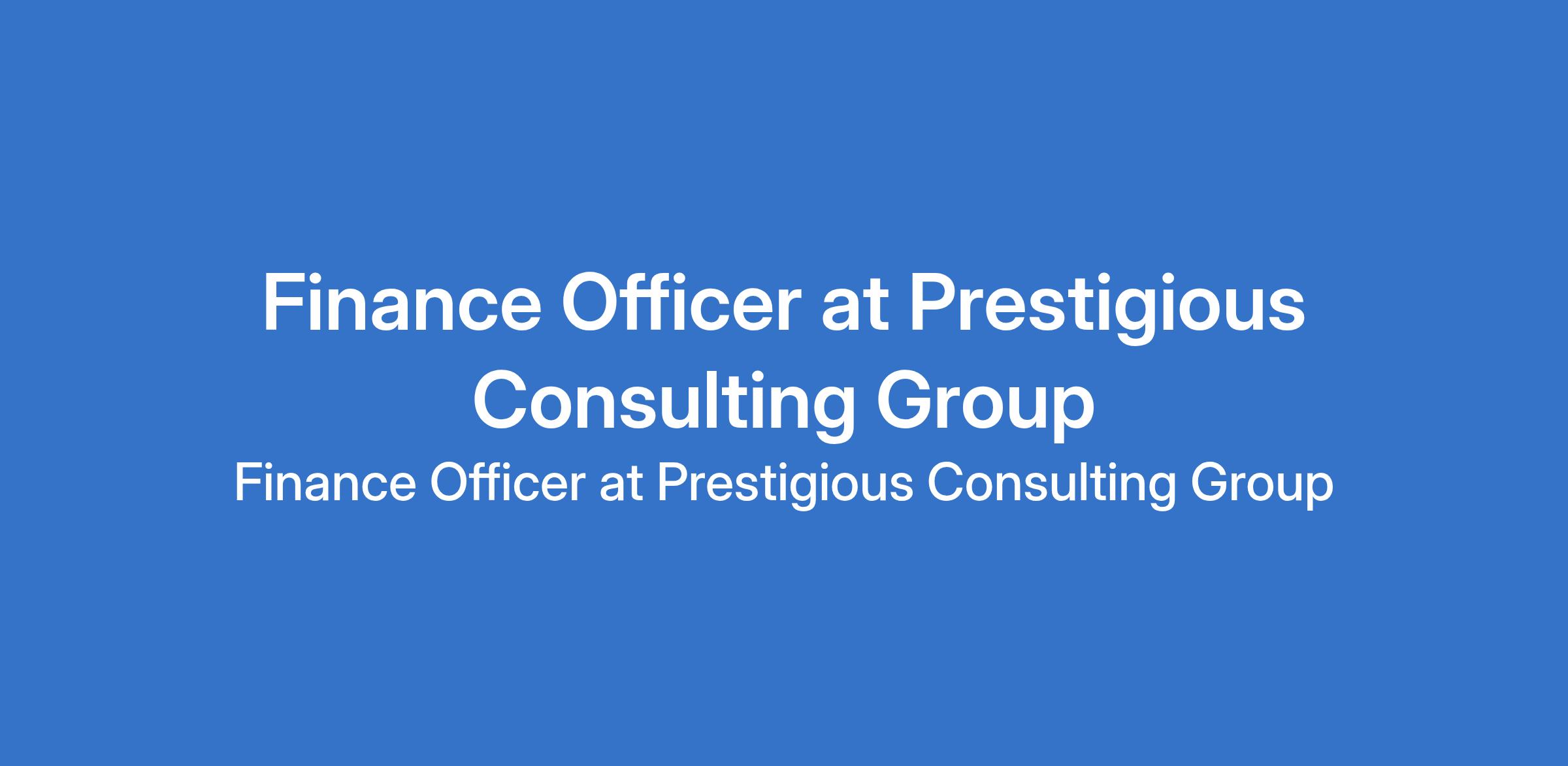 Prestigious Consulting Group is recruiting to fill the position of: Finance Officer. The position is located in Lekki Phase 1, Lagos State. Salary: N300,000 monthly. Interested candidates should possess a Bachelors Degree in Accounting, Finance, or a related field with 35 years relevant experience in a finance or accounting role with 3-6 years experience.