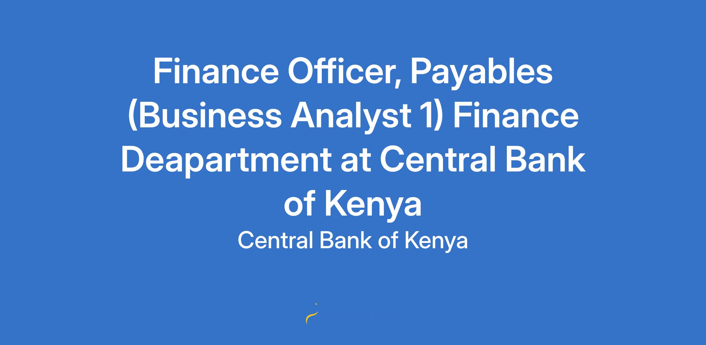 Finance Officer, Payables (Business Analyst 1) Finance Deapartment at Central Bank of Kenya