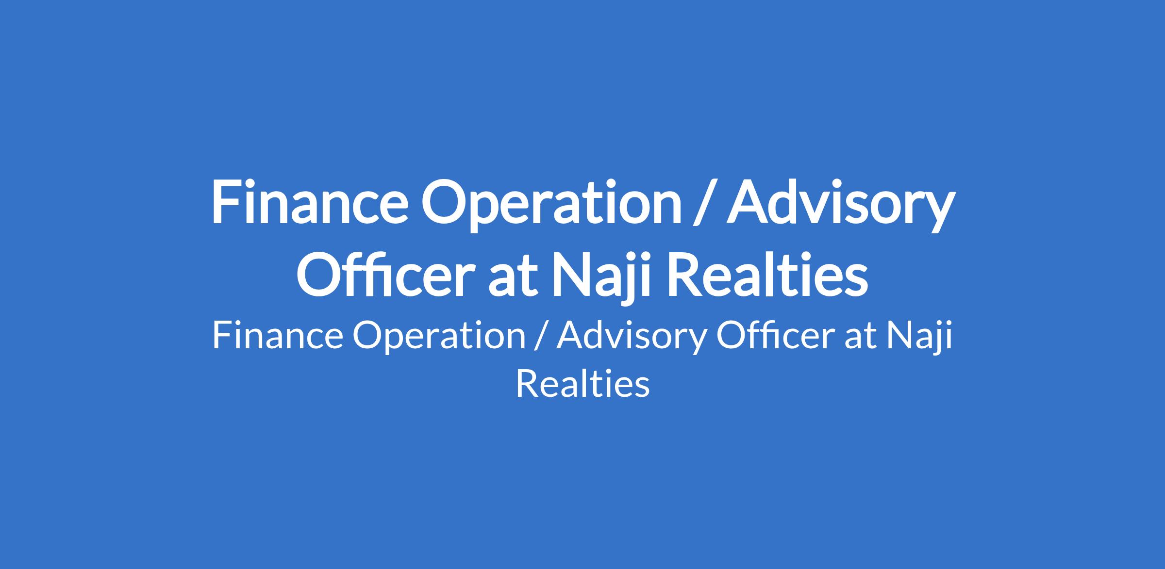 Naji Realties is recruiting to fill the position of: Finance Operation / Advisory Officer. The position is located in Utako, Abuja (FCT). Interested candidates should possess a Bachelors Degree in Accounting, Finance, or a related field with a minimum of 4 years experience in a similar role.