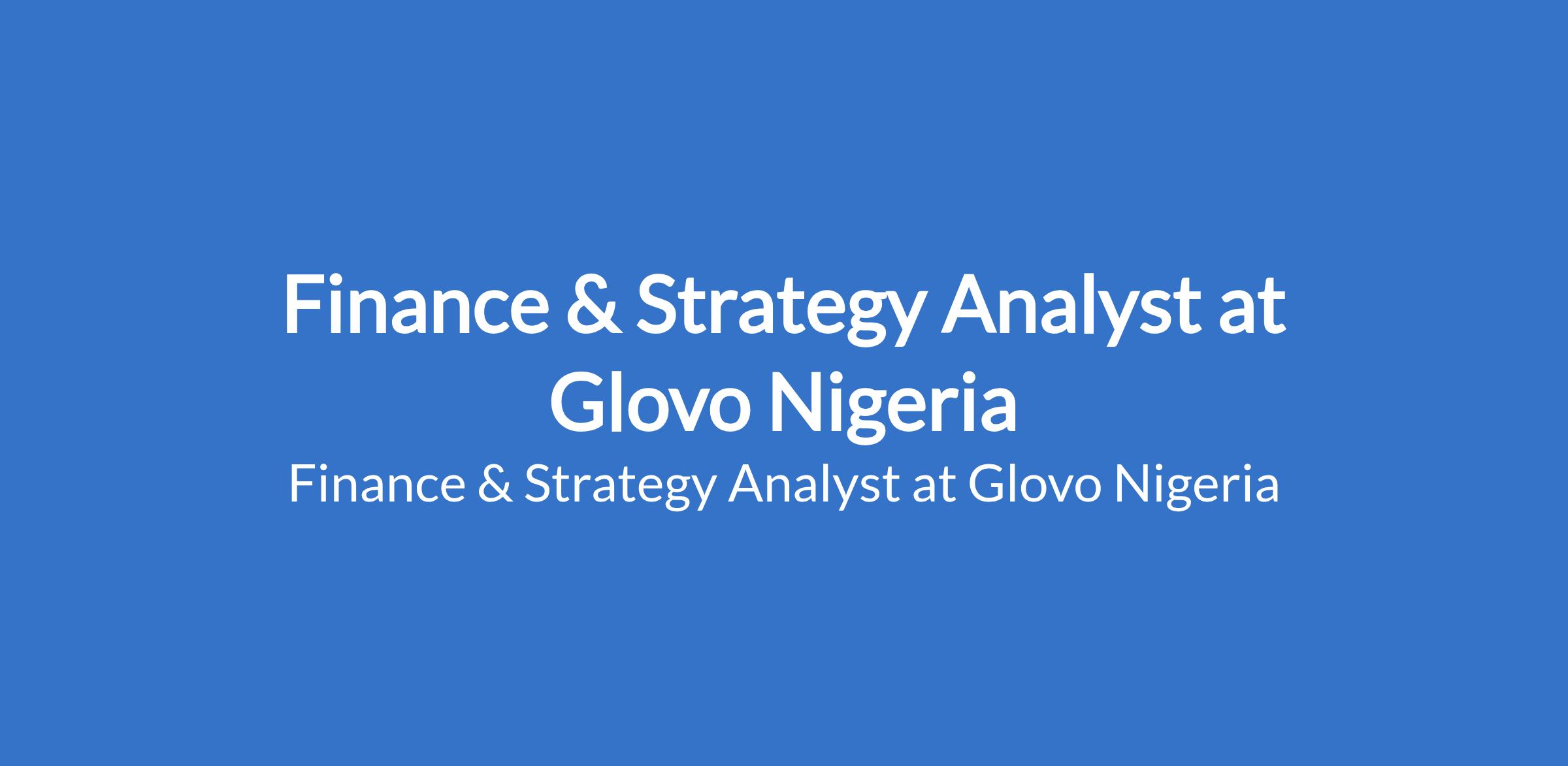 Glovo Nigeria is recruiting to fill the position of: Finance & Strategy Analyst. The position is located in Lagos State. Interested candidates should possess relevant qualifications with a minimum of 2 years experience in top-tier management consulting, investment banking, corporate strategy and/ or a fast paced analytical role in a high growth environment.