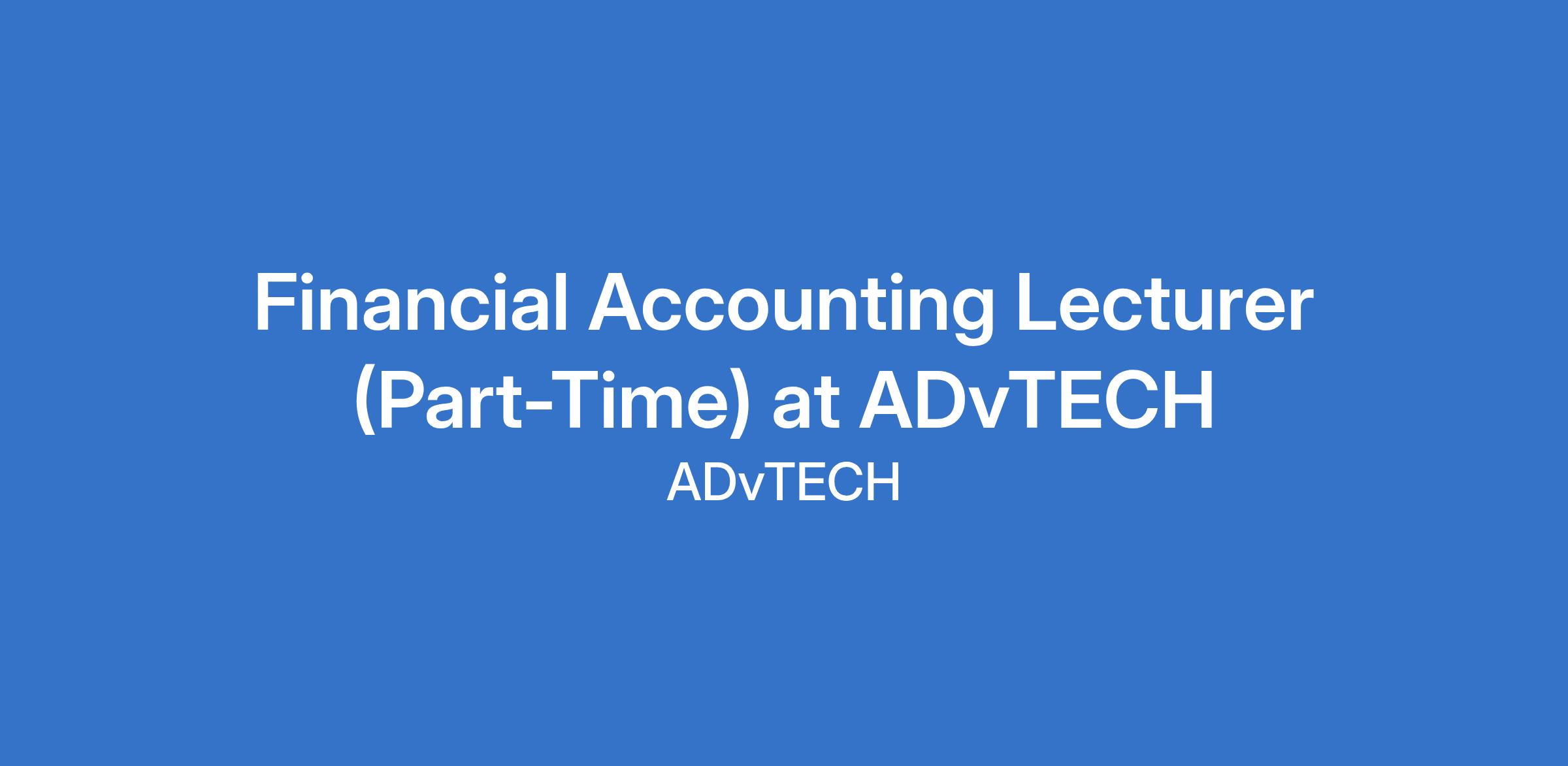 Financial Accounting Lecturer (Part-Time) at ADvTECH