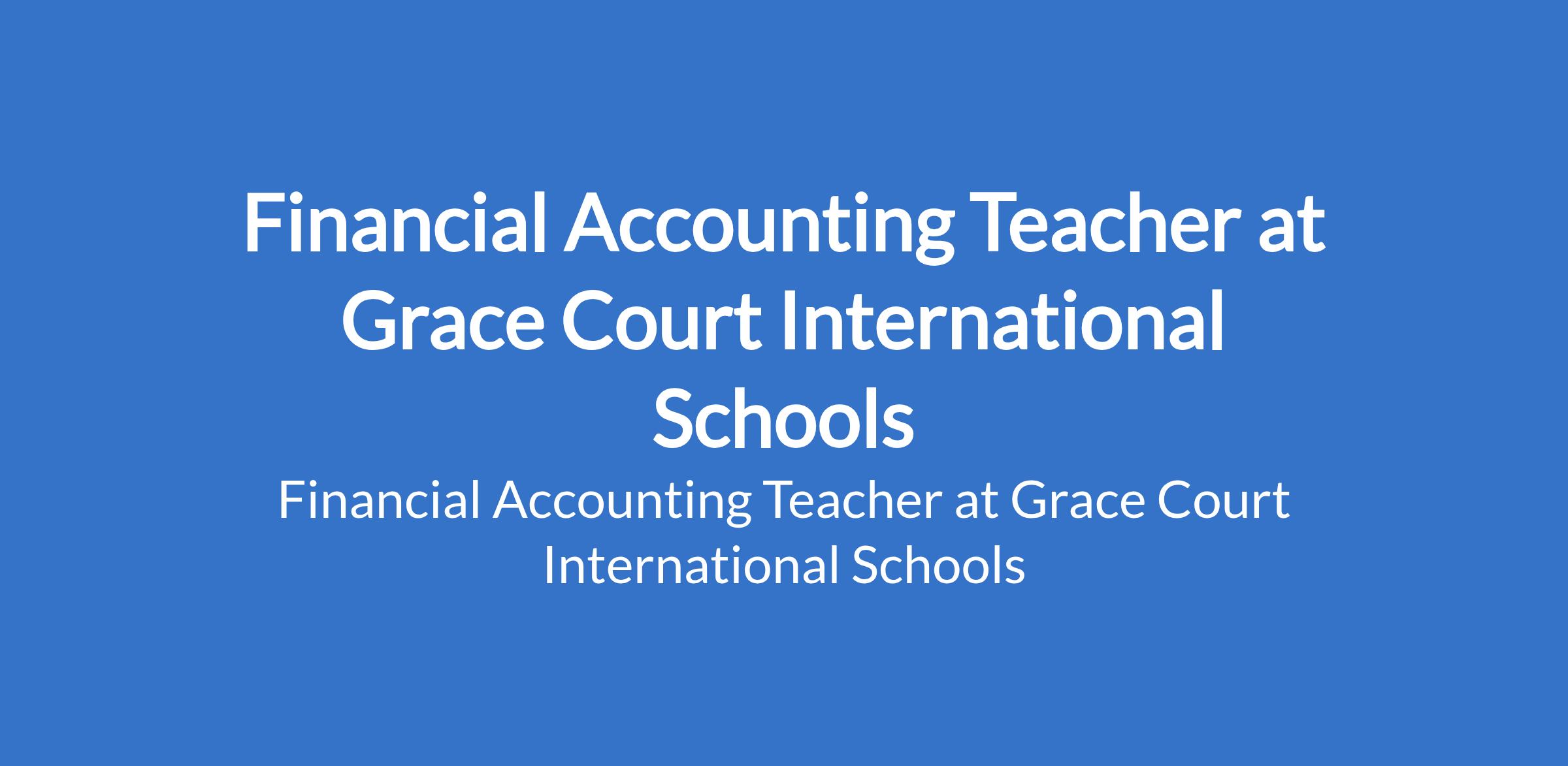 Grace Court International Schools is recruiting to fill the position of: Financial Accounting Teacher. The position is located in Anambra State. Interested candidates should possess a minimum of a First Degree with 0-10 years of experience and must live within Awka.