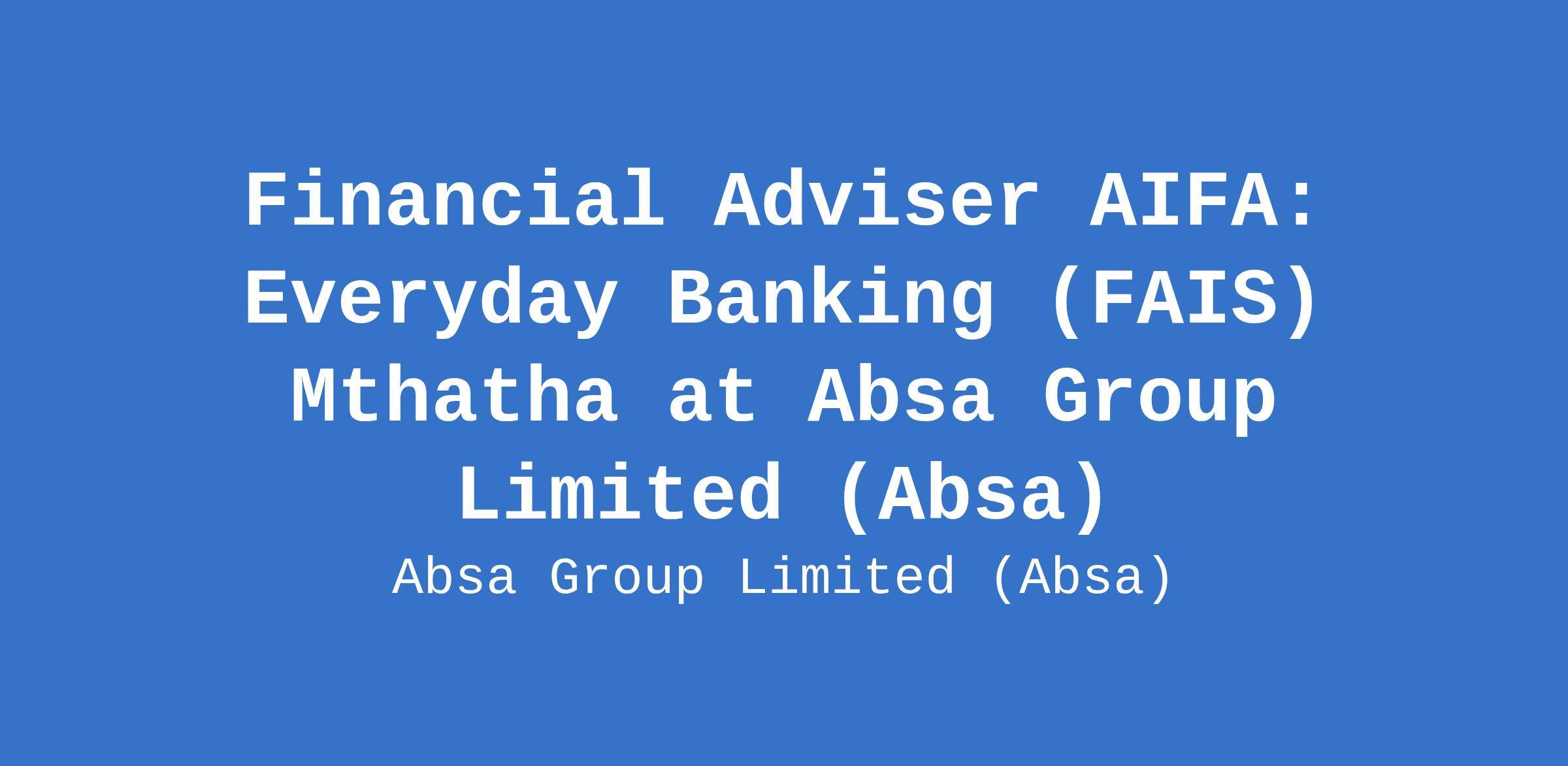 Financial Adviser AIFA: Everyday Banking (FAIS) Mthatha at Absa Group Limited (Absa)