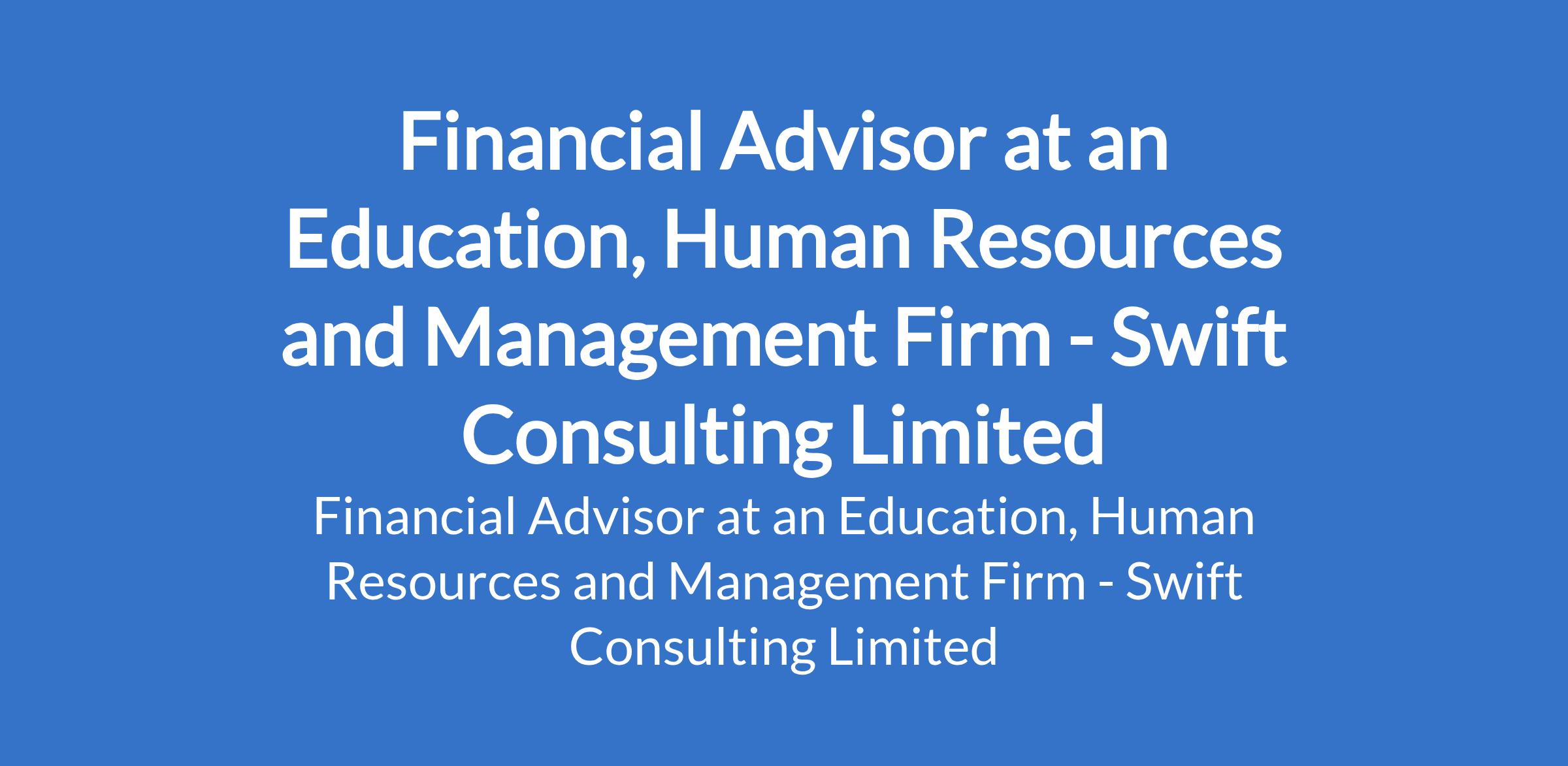 Swift Consulting Limited - Our client, an Education, Human Resources and Management Firm is recruiting to fill the position of: Financial Advisor. The position is located in Apapa, Lagos State. Interested candidates should possess a BSc, HND, or OND in Marketing, Business Administration, Finance, or related field with a minimum of one (1) year experience in sales or marketing (financial services experience is an added advantage).