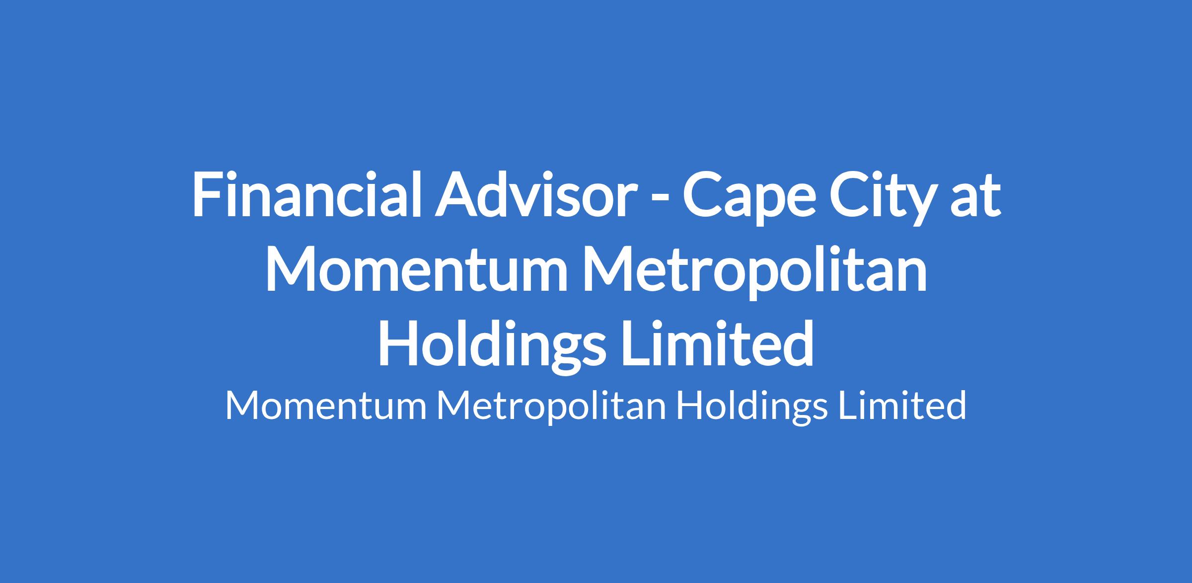 Financial Advisor - Cape City at Momentum Metropolitan Holdings Limited