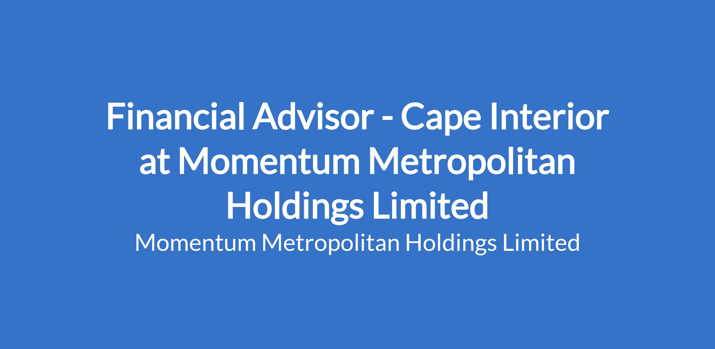 Financial Advisor - Cape Interior at Momentum Metropolitan Holdings Limited