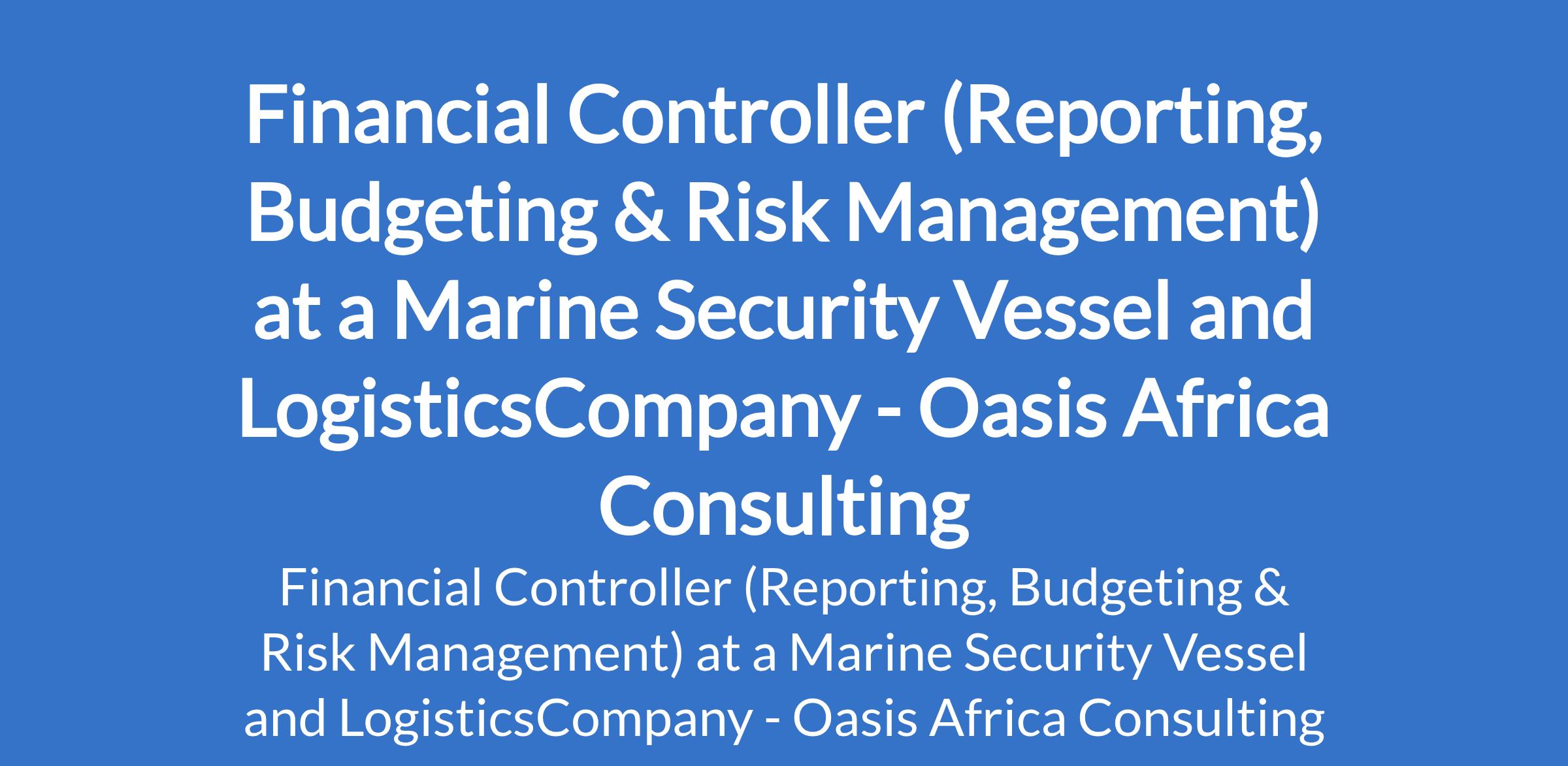 Oasis Africa Consulting Limited - Our client, a marine security vessel and logisticscompany is recruiting to fill the position of: Financial Controller (Reporting, Budgeting & Risk Management). The position is located in Jakande, Lagos State. Interested candidates should possess a Bachelors Degree in Accounting, Finance, or a related field (Masters degree or MBA is an advantage). Professional certification, such as ICAN/ACA, ACCA, CPA, or CFA, is required with a minimum of 10 years of progressive finance and accounting experience, with at least 5 years in a senior leadership role.