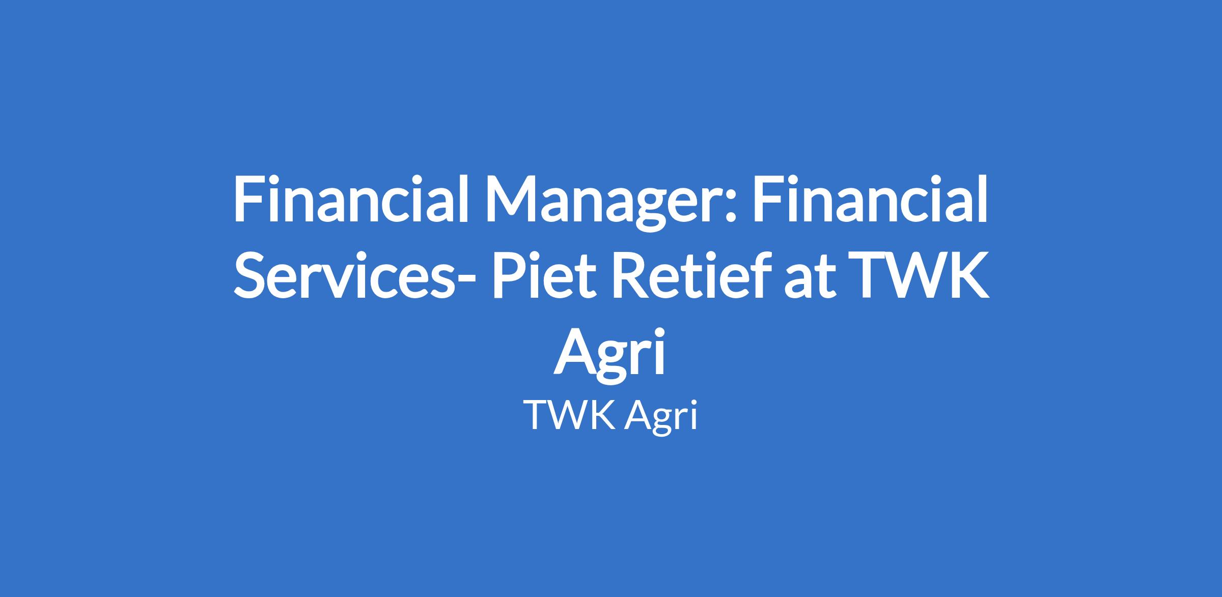 Financial Manager: Financial Services- Piet Retief at TWK Agri