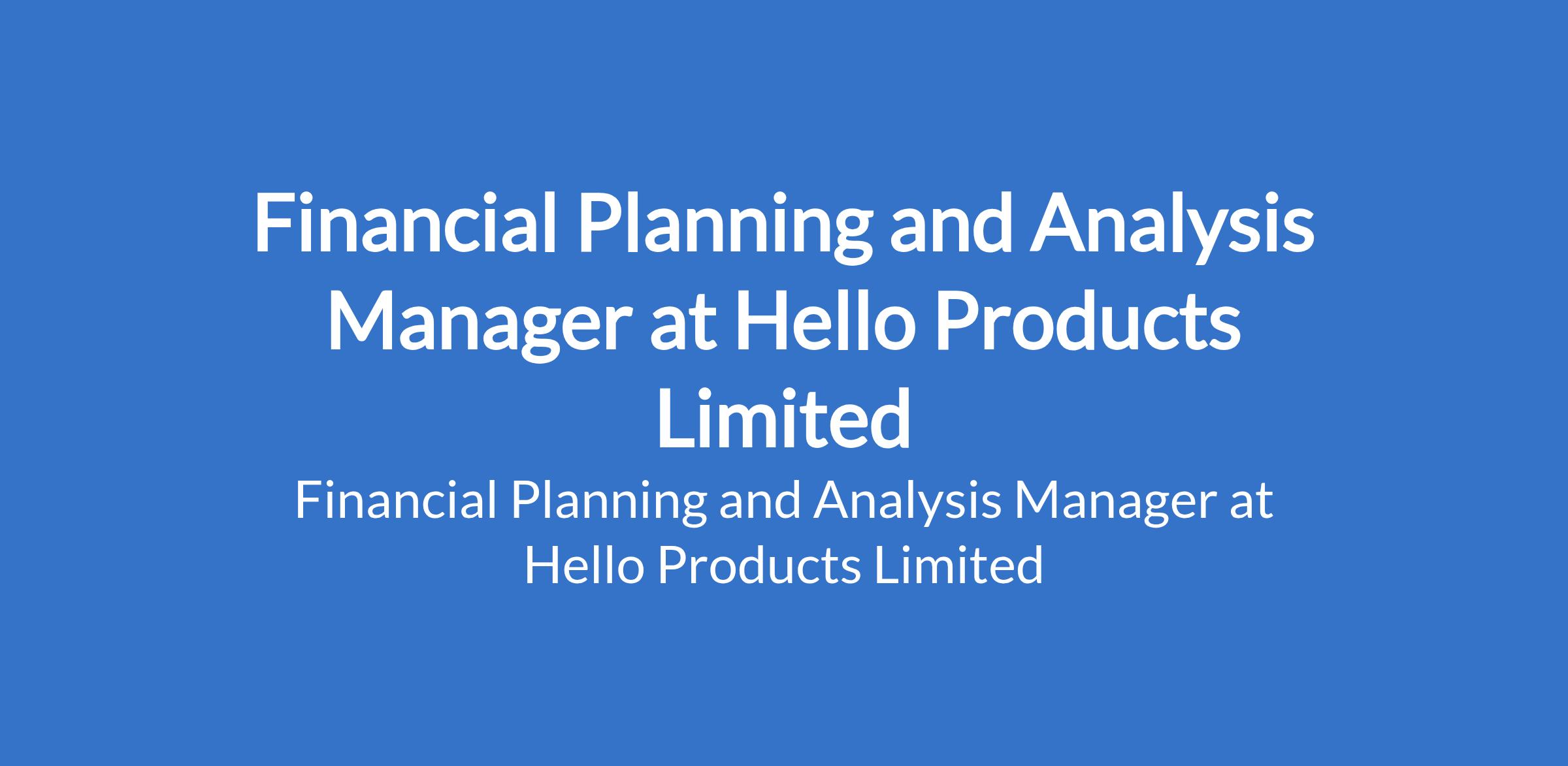 Hello Products Limited is recruiting to fill the position of: Financial Planning and Analysis Manager. The position is located in Lagos State. Interested candidates should possess relevant qualifications with 5 - 10 years experience.