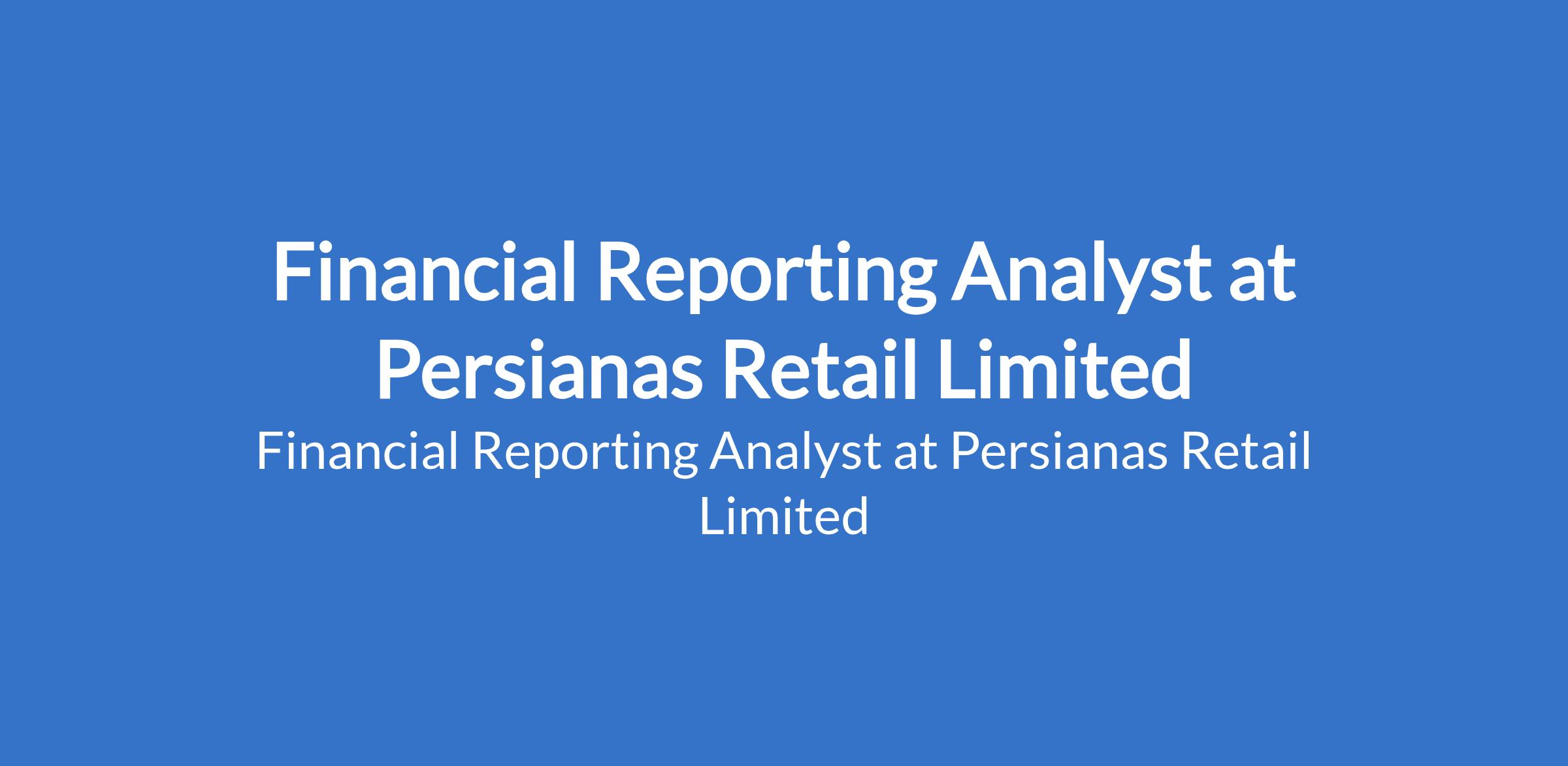 Persianas Retail Limited is recruiting to fill the position of: Financial Reporting Analyst. The position is located in Lekki, Lagos State. Interested candidates should possess a Bachelors Degree in Accounting, Finance, or related disciplines with 46 years experience in Financial Reporting and FP&A.