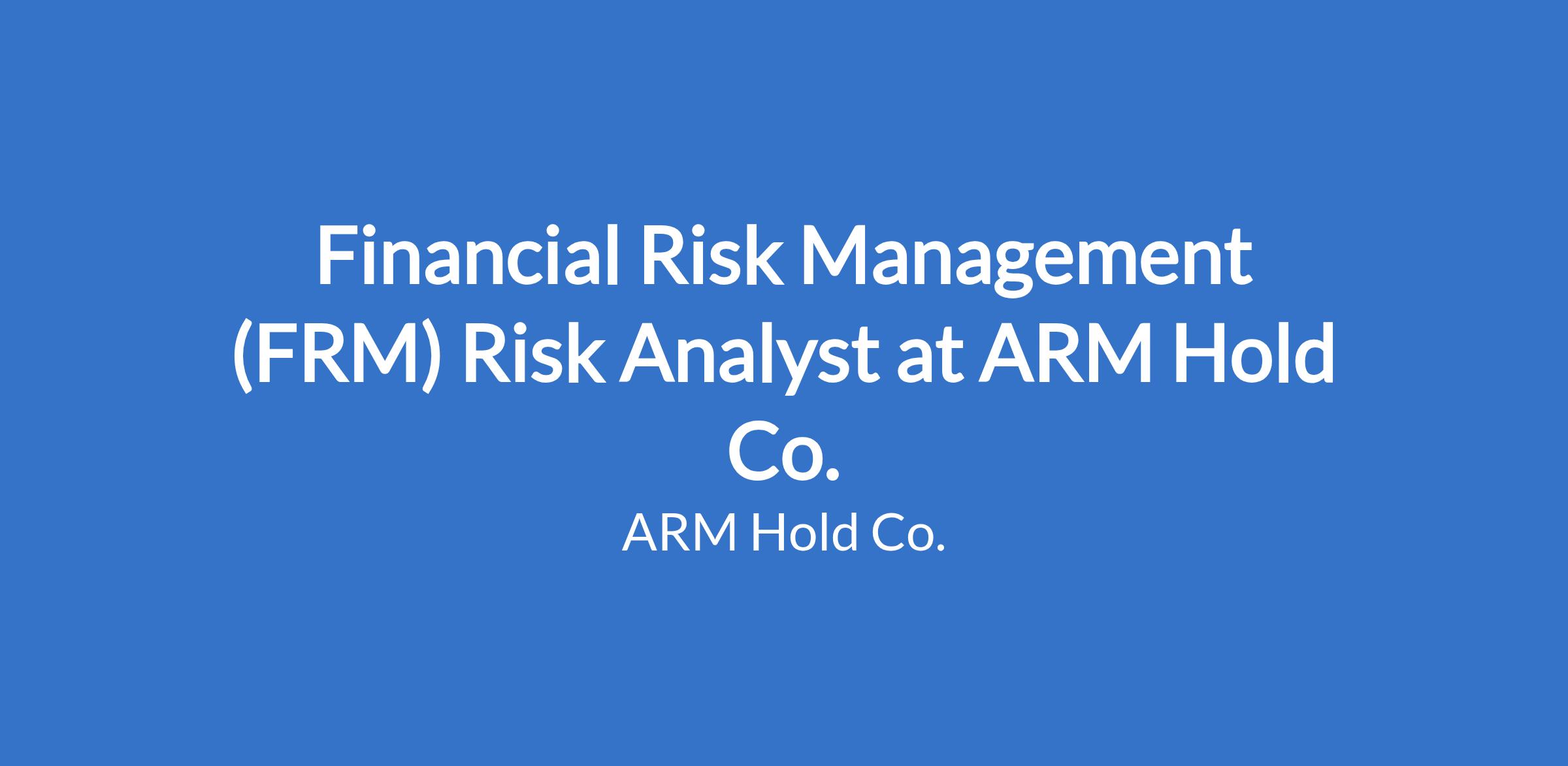 Financial Risk Management (FRM) Risk Analyst at ARM Hold Co.