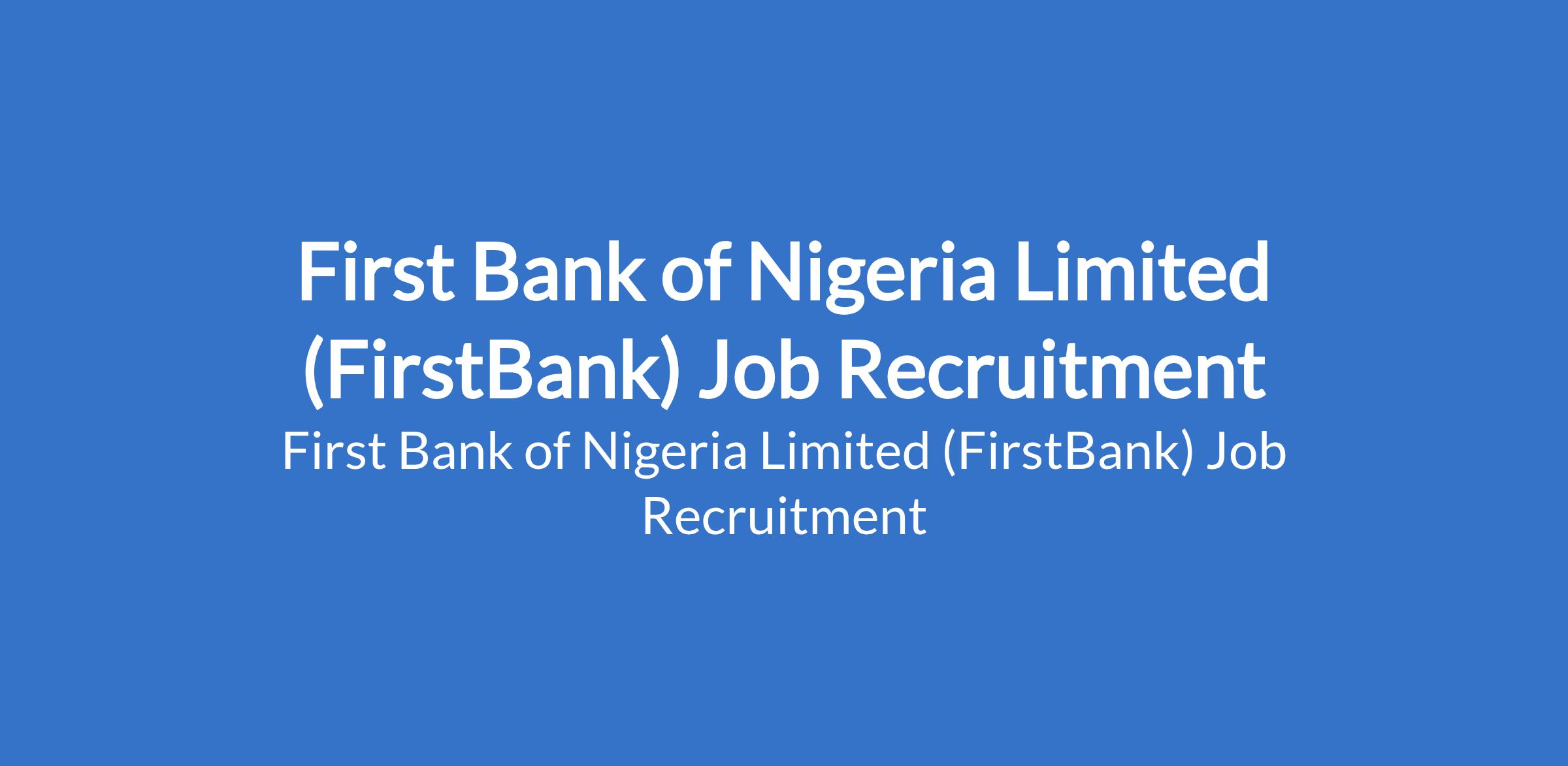 First Bank of Nigeria Limited (FirstBank) Job Recruitment