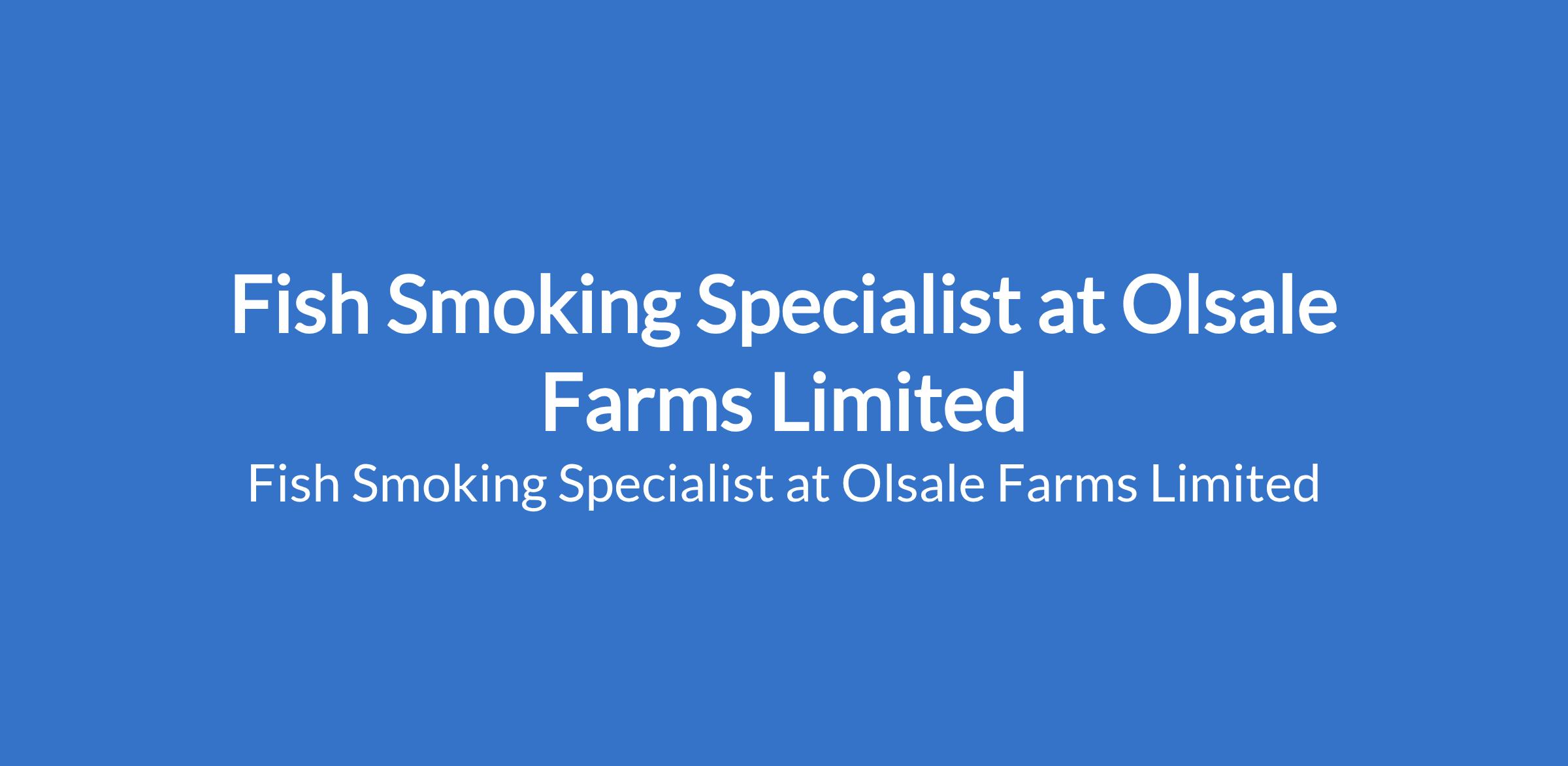 Olsale Farms Limited is recruiting to fill the position of: Fish Smoking Specialist. The position is located in Ijebu-Igbo, Ogun State. Interested candidates should possess relevant qualifications with a minimum of 8 years of proven experience in fish smoking.