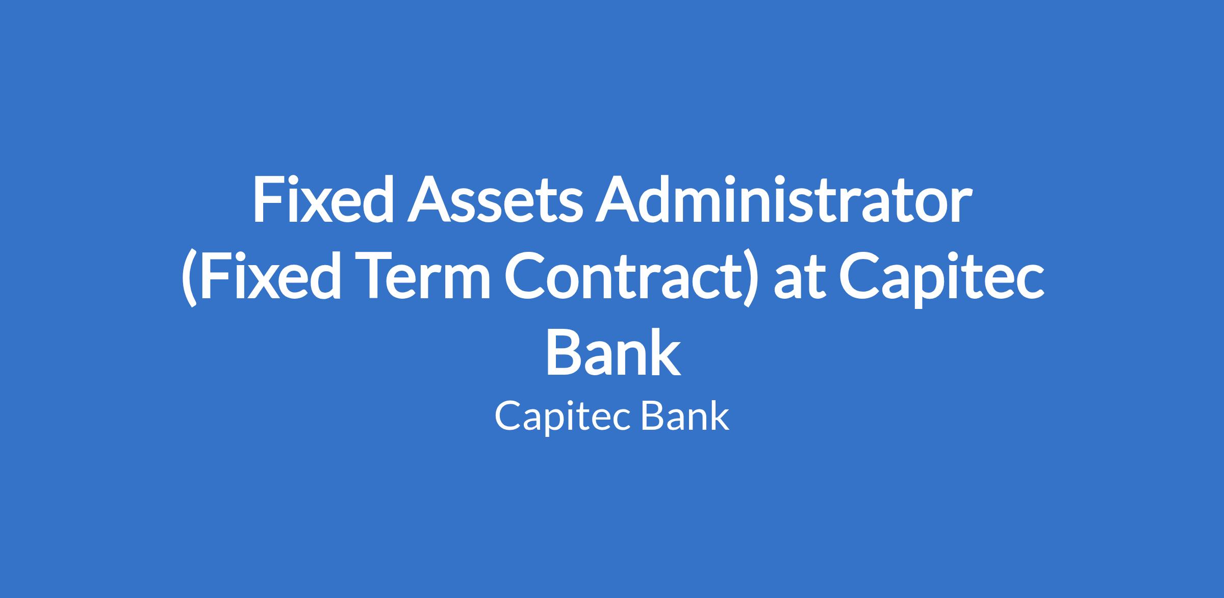 Fixed Assets Administrator (Fixed Term Contract) at Capitec Bank