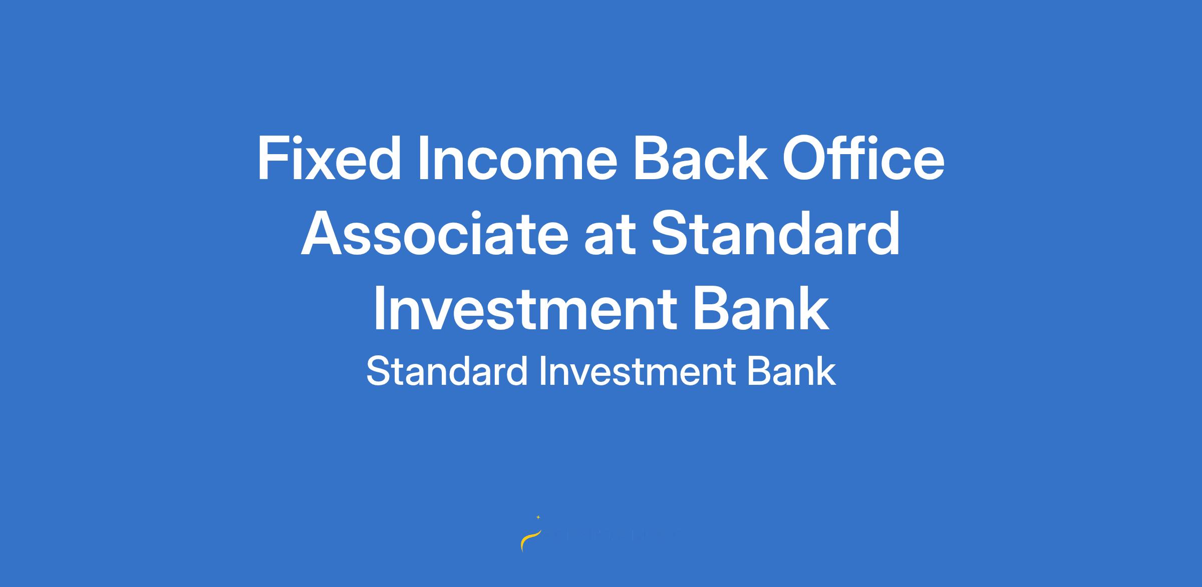 In line with our mission to positively impact the financial prosperity of people and organizations; SIB is looking to hire a highly analytical and proactive Fixed Income Back Office Associate who will play a critical role in ensuring smooth post-trade operations for our fixed income trading desk.