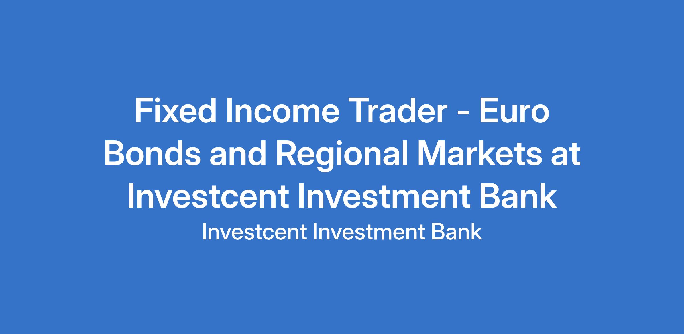 Fixed Income Trader - Euro Bonds and Regional Markets at Investcent Investment Bank