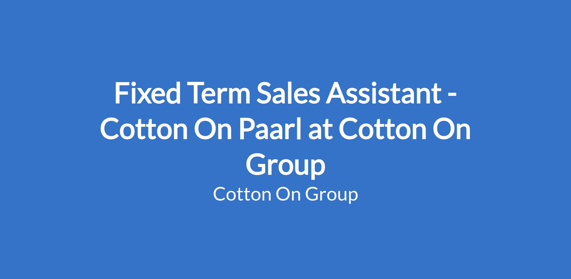 Fixed Term Sales Assistant - Cotton On Paarl at Cotton On Group